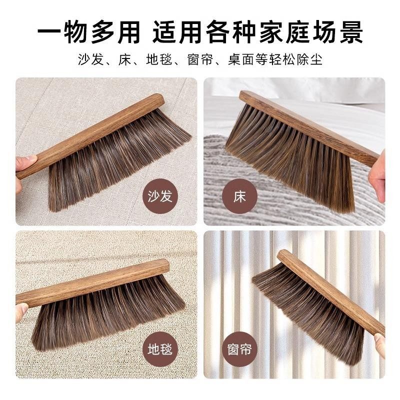 马鬃毛刷软毛长柄扫床刷子家用新款鸡翅木除尘神器床上毛刷扫床刷