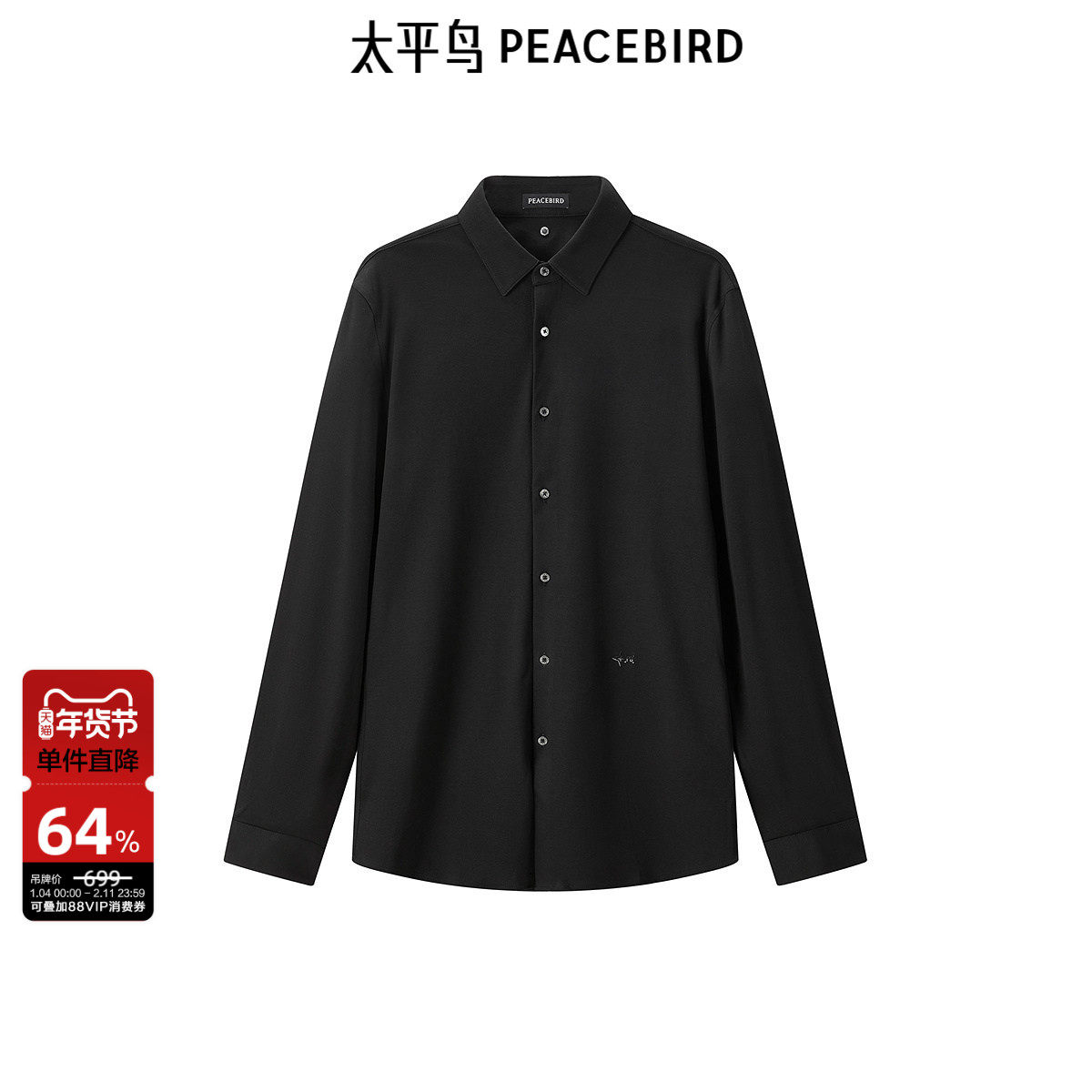 太平鸟男装 长袖衬衫男秋季字母刺绣黑色修身衬衣外套潮