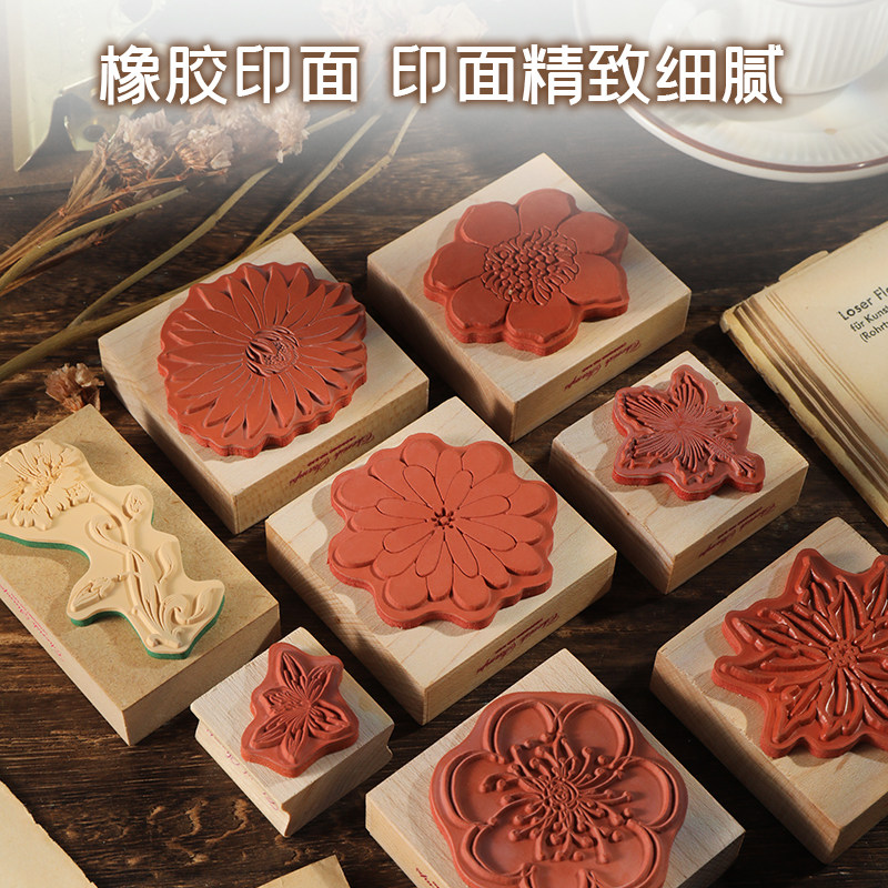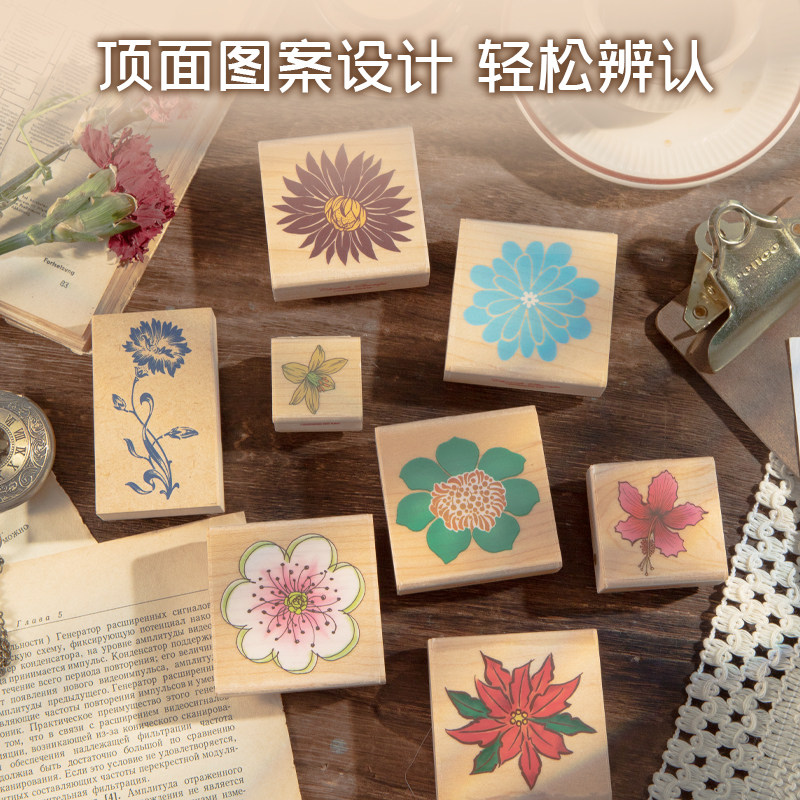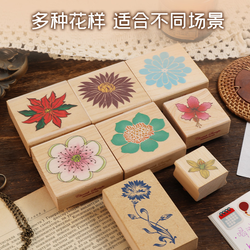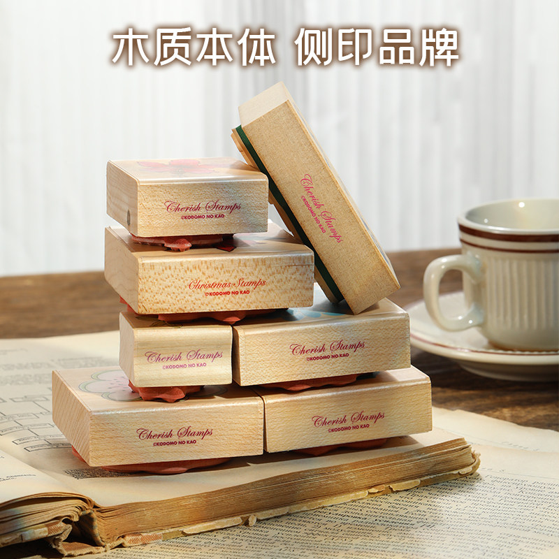 日本 KODOMO NO KAO 童颜花卉百合木制印章手账DIY装饰木头橡皮章