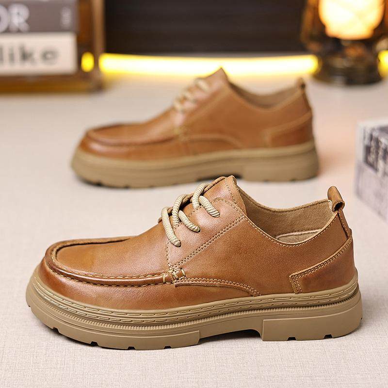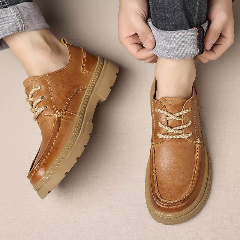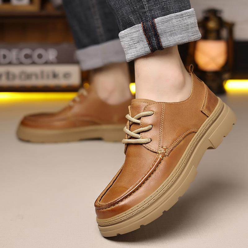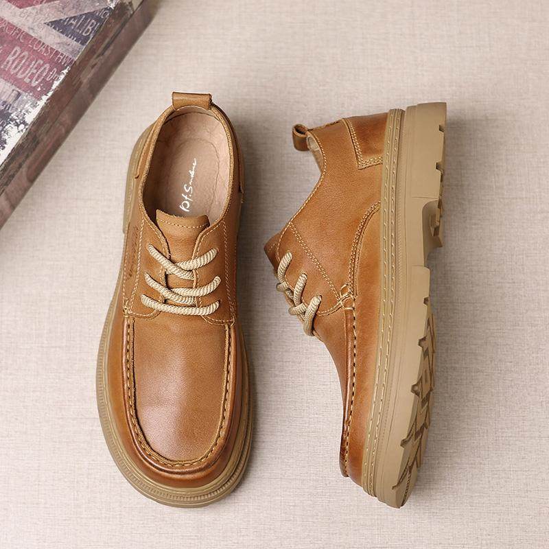 MRA棕色德比鞋男款2025新款秋季低帮大黄靴厚底增高大头工装皮鞋