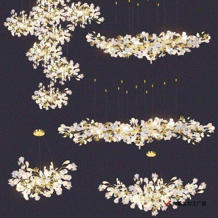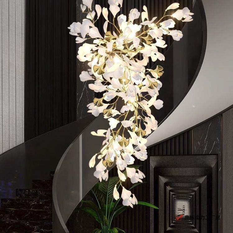 大吊灯复式楼loft楼梯灯轻奢别墅挑空跃层客厅大堂售楼部银杏叶灯