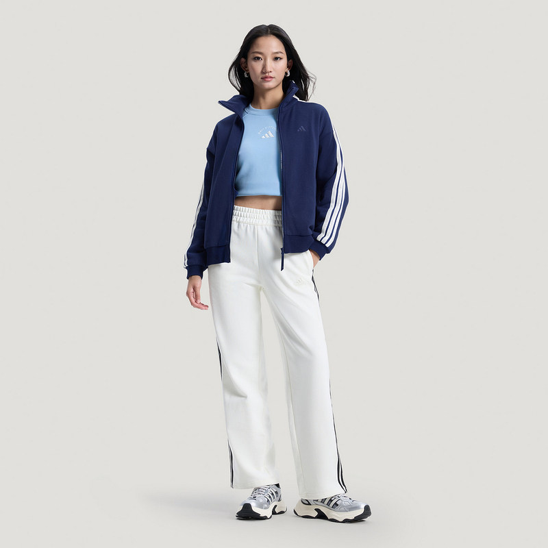 adidas阿迪达斯提花三条纹拉链棉质外套2026春女针织夹克 KS2816