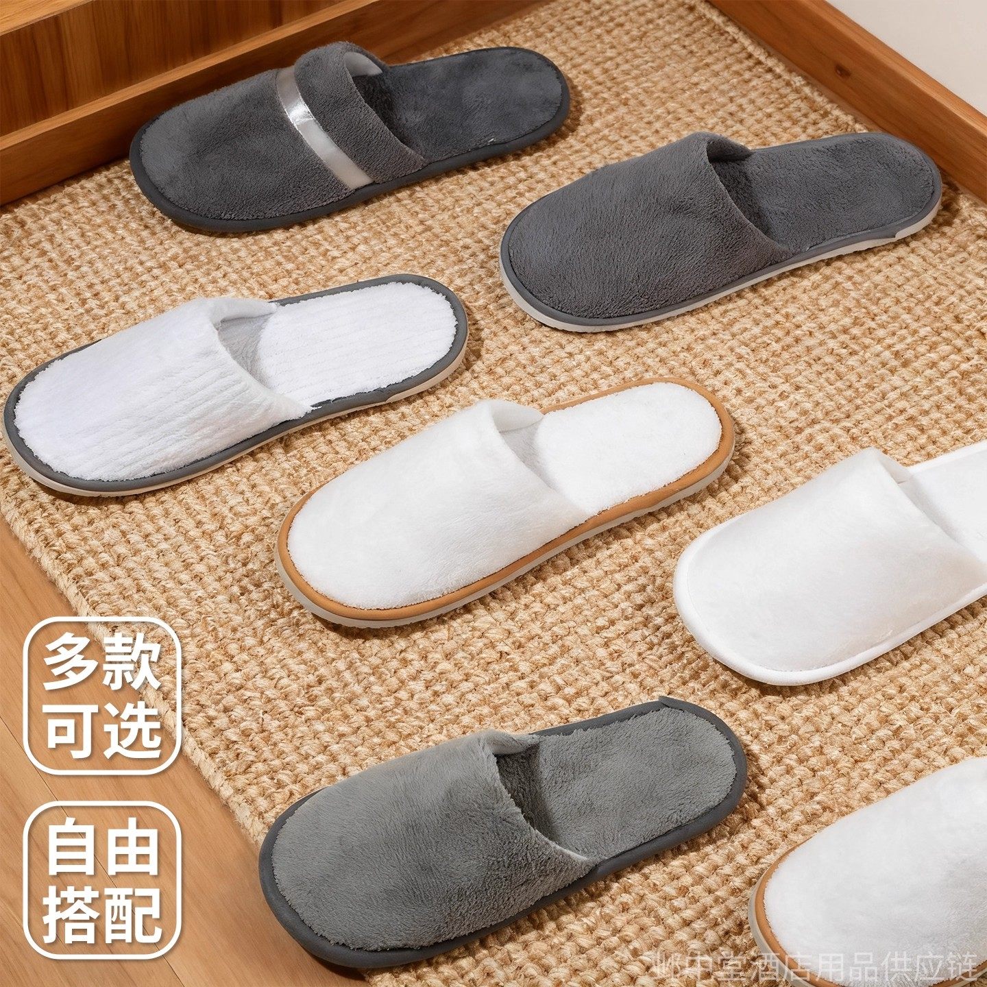 酒店一次性拖鞋待客珊瑚绒加厚防滑家用高档宾馆秋冬专用旅行厚底