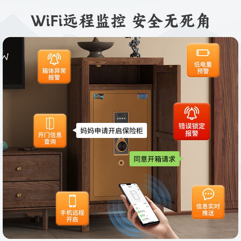 虎牌保险柜家用2026新款防盗新中式CSP国标隐形保险箱床头柜宋氏家具智能存钱首饰文件密码箱搬不走客厅边柜