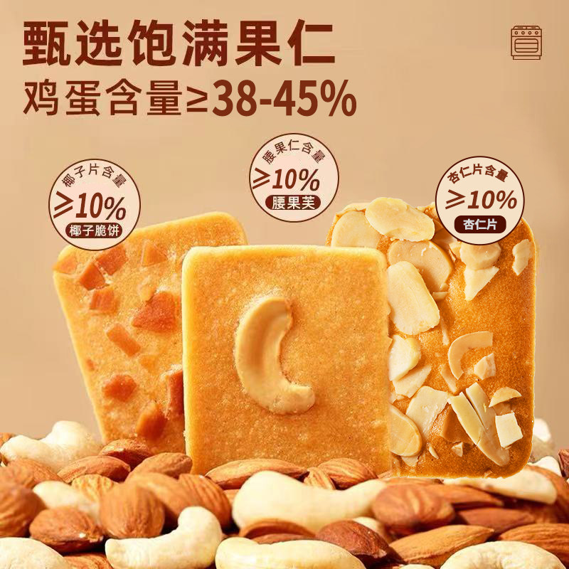 坚果芙饼干杏仁片椰片芙脆曲奇单独小包装小零食腰果好吃下午茶