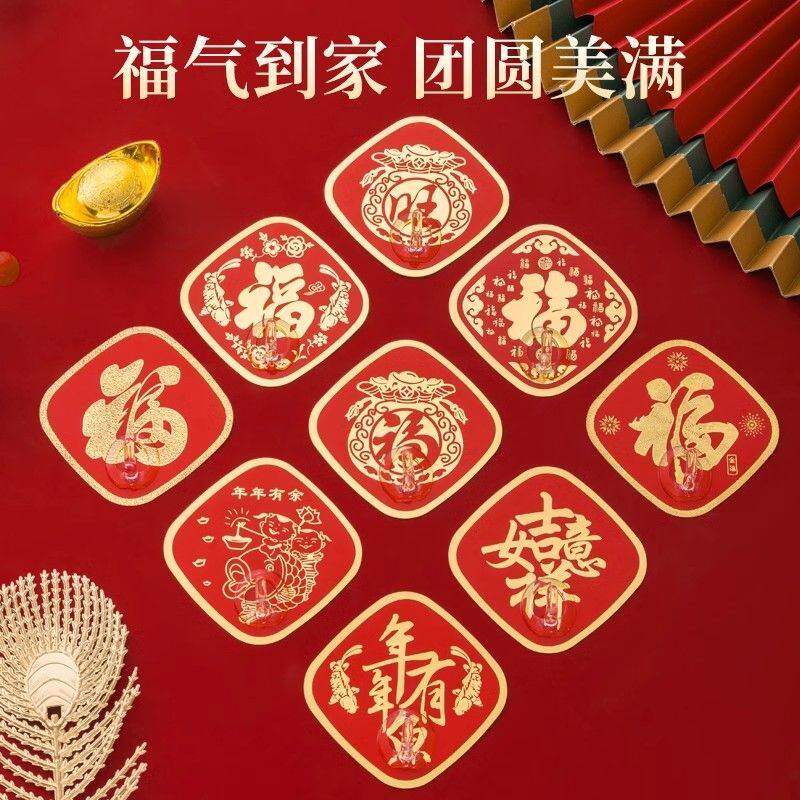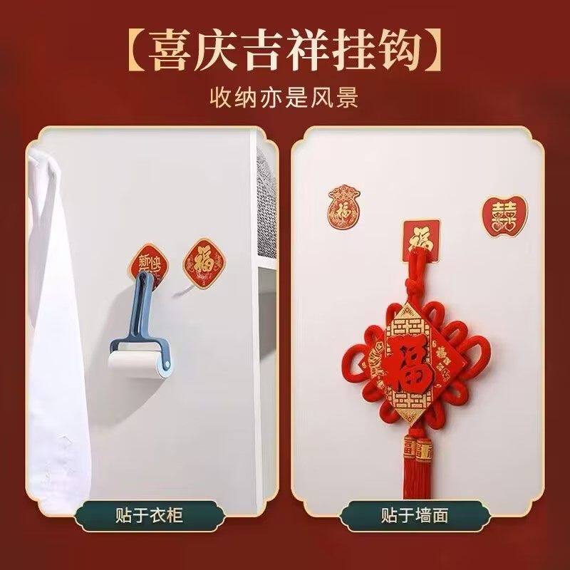 中国红色福字挂钩新年装饰粘钩免打孔无痕结婚喜庆墙上强力自粘勾