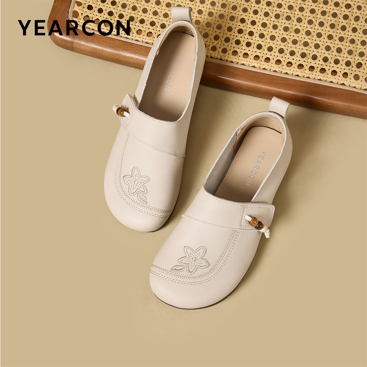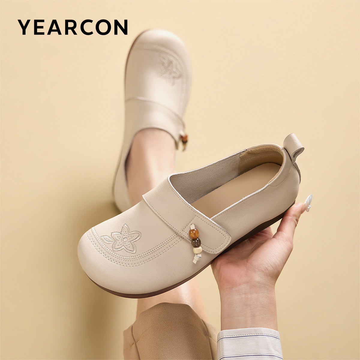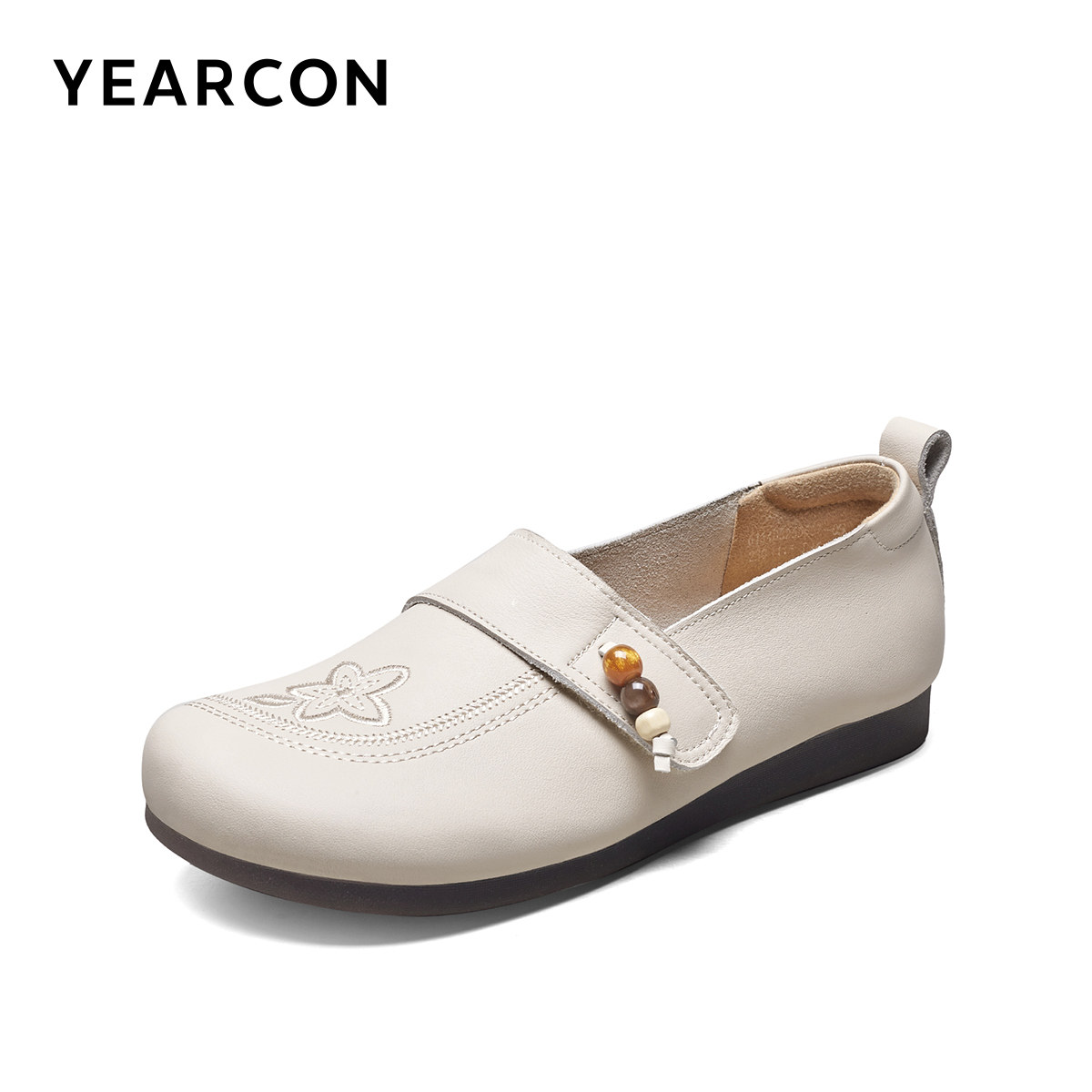 意尔康女鞋2026春季新款大码真皮乐福鞋平底休闲单鞋中老年妈妈鞋