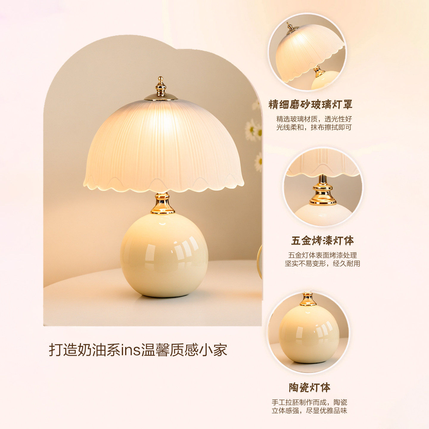 奶油风台灯卧室创意床头柜轻奢桌面高级感主卧温馨结婚氛围小夜灯