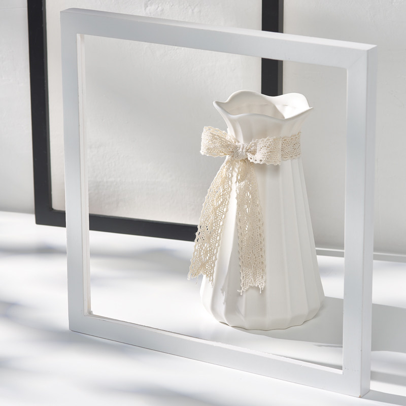 蕾丝白色陶瓷花瓶客厅现代创意水培器皿家居装饰插花摆件桌面卧室
