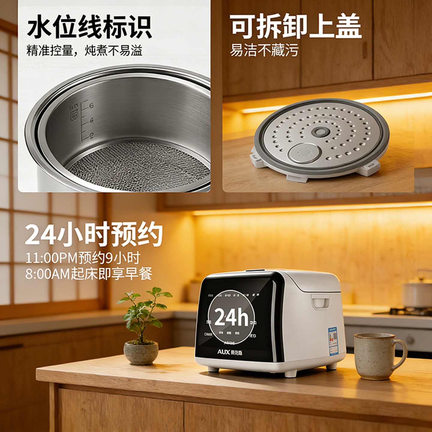 奥克斯低糖电饭煲1-8人家用厨房大容量多功能电饭锅智能预约蒸煮