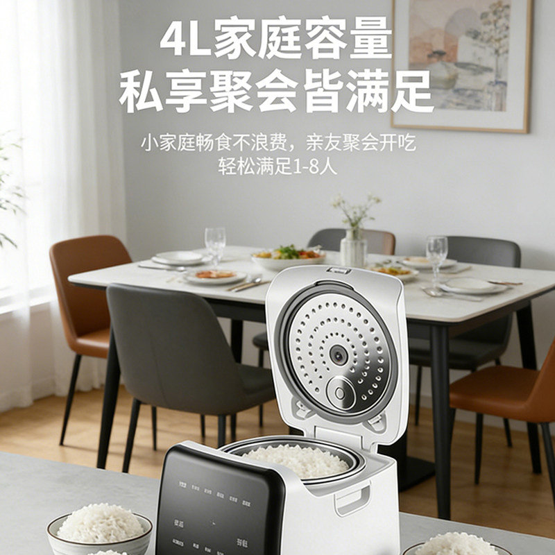 美的电饭煲家用5升不粘陶瓷釉内胆大容量4L电饭锅2025年新款智能