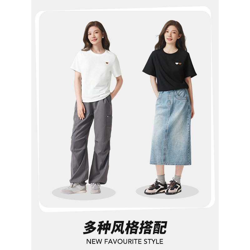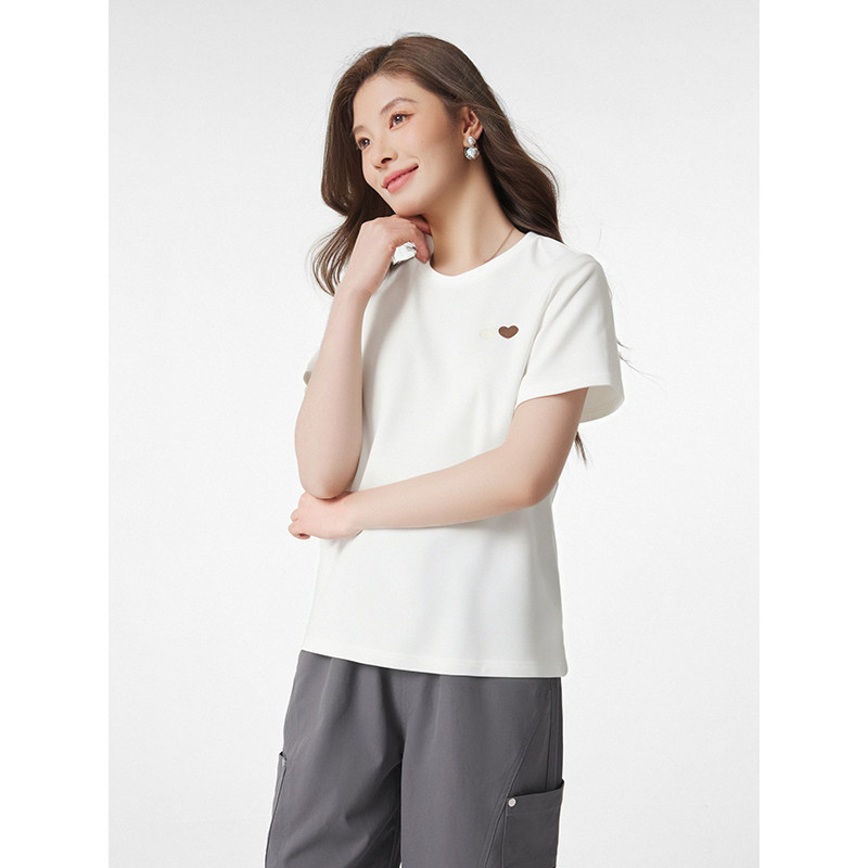基础款T恤热风2025夏季新款女士爱心刺绣短T通勤简约百搭短袖上衣