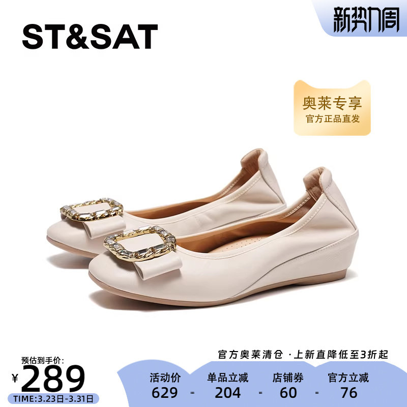 星期六方头中跟单鞋春季新款优雅坡跟通勤上班单鞋SSC111130L