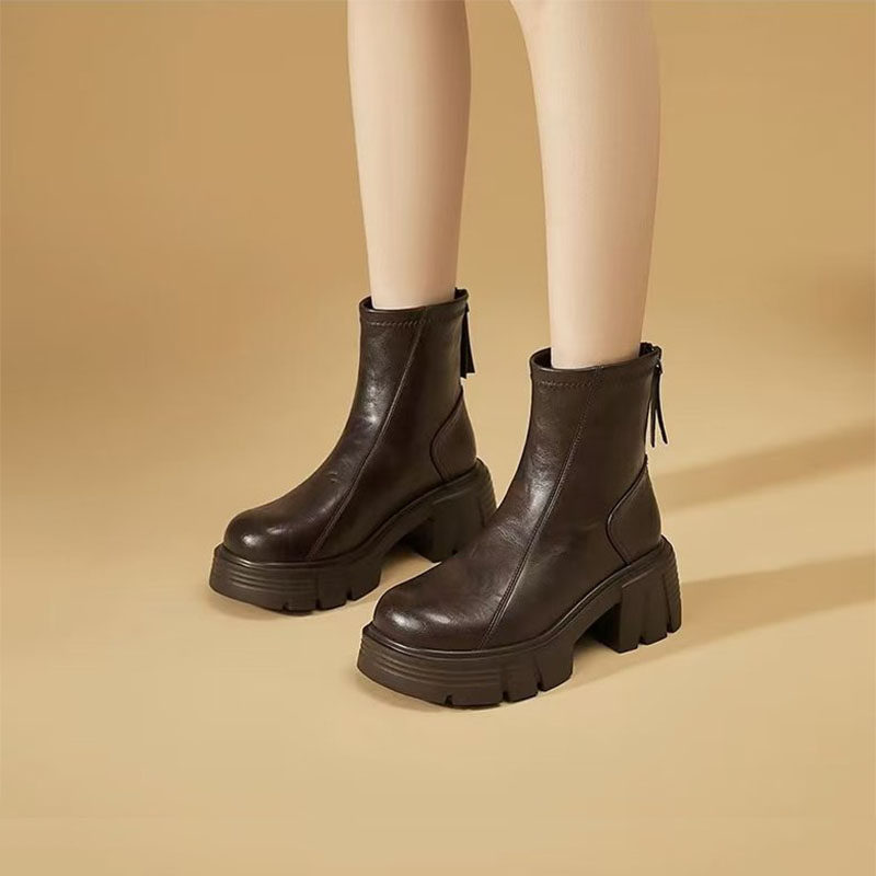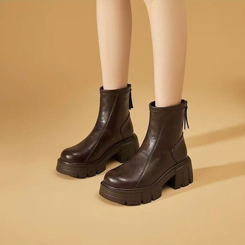 高跟马丁靴厚底切尔西女靴2025秋冬季新款时尚软皮增高英伦风短靴