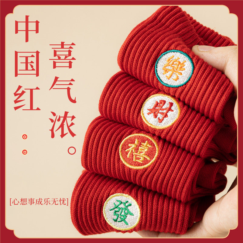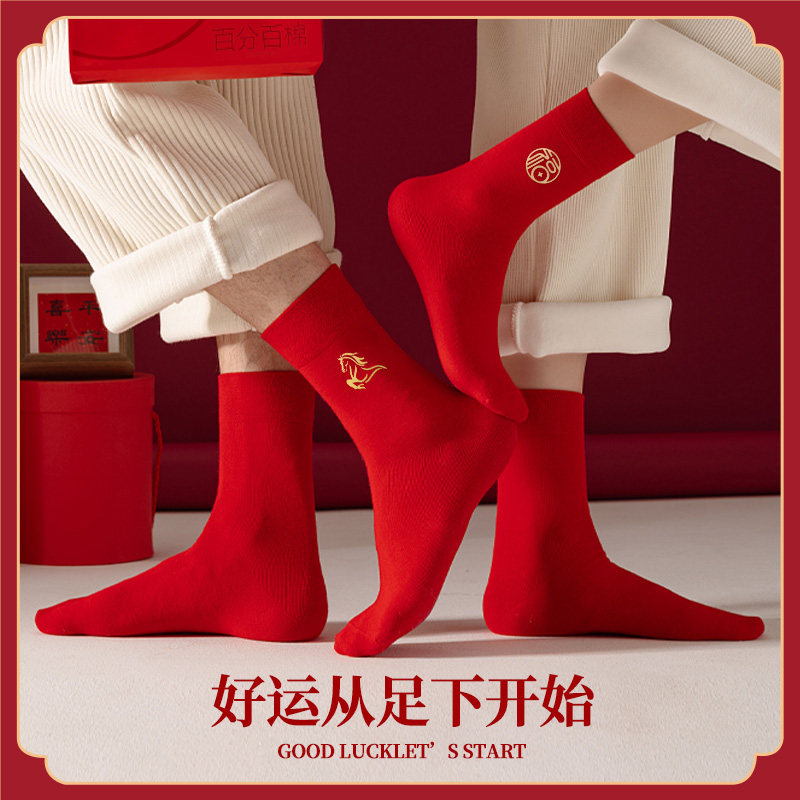 雅鹿本命年袜子大红色纯棉男女情侣款中筒袜马年老人礼盒装多规格