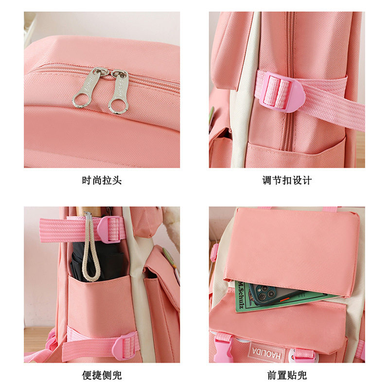 学生书包小清新校园风时尚双肩包四件套韩版休闲轻便旅行电脑背包减负