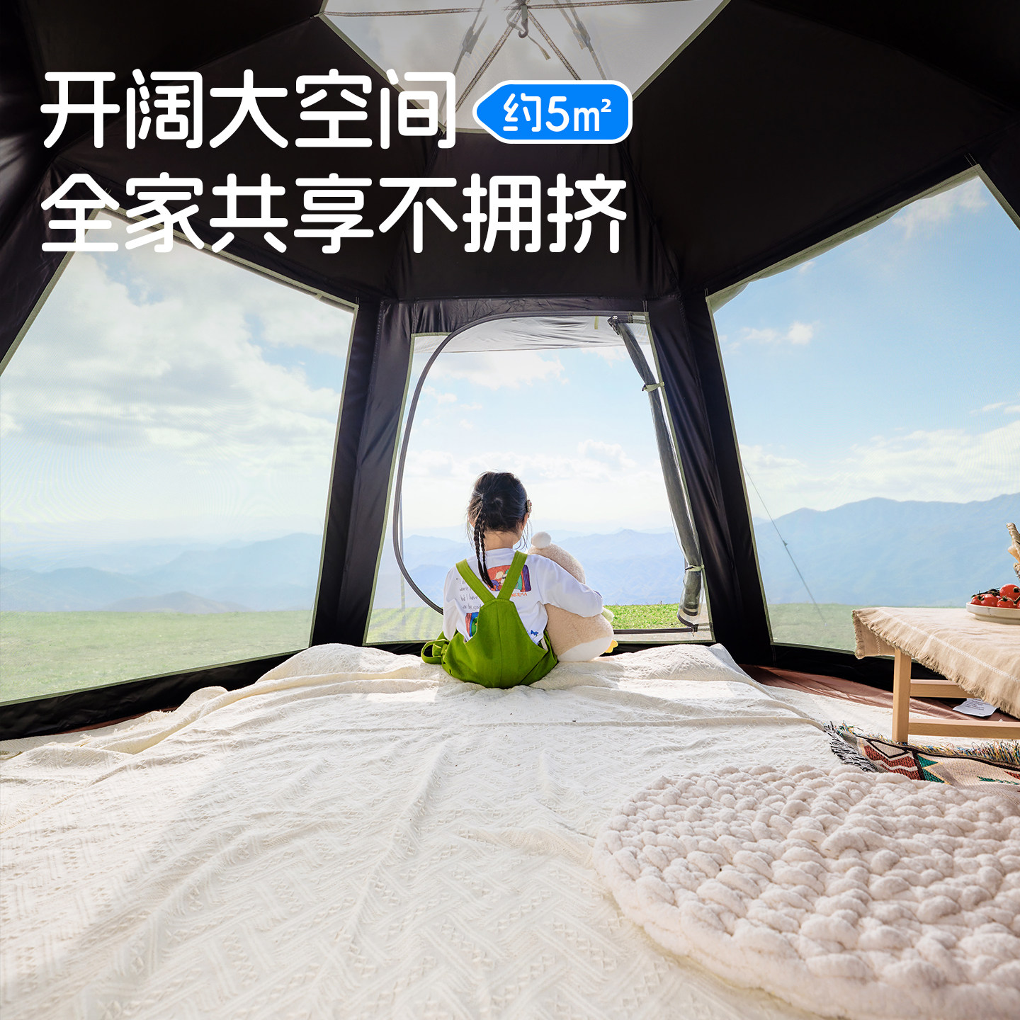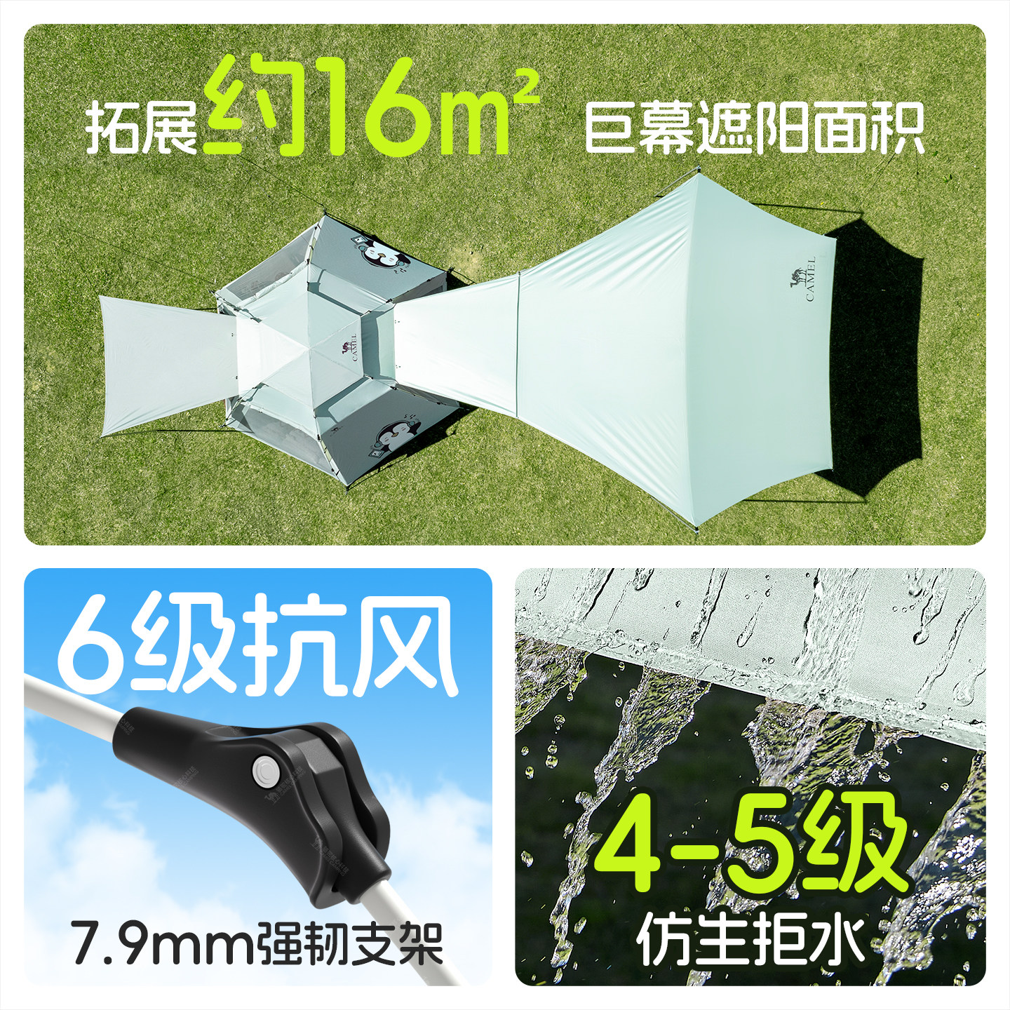 骆驼抱抱鹅六角黑胶户外露营公园野营自动天幕帐篷二合一2025新品