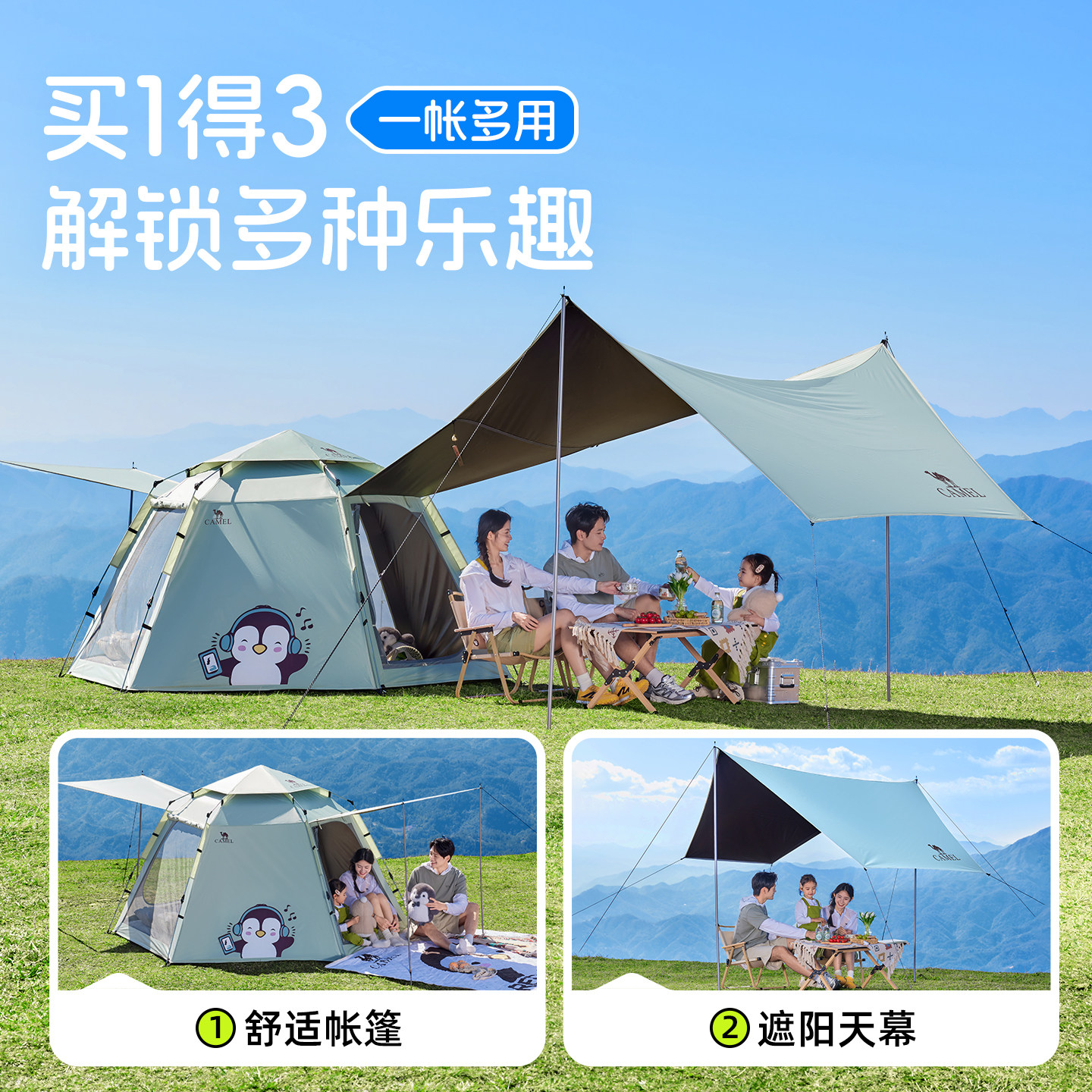 骆驼抱抱鹅帐篷便携式折叠户外露营野营过夜2025新款儿童野餐装备