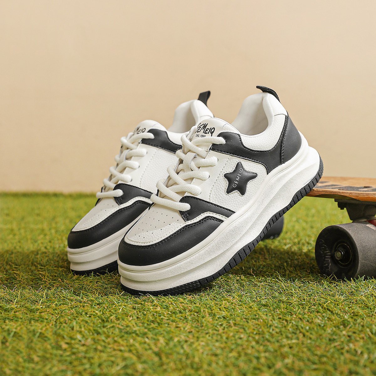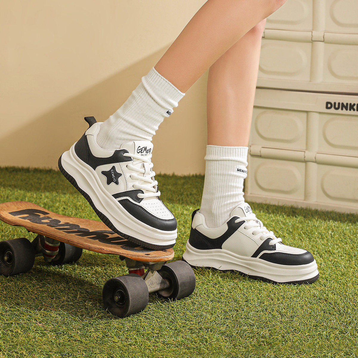 戈美其星星板鞋女款2024春季新款厚底熊猫鞋百搭休闲运动鞋小白鞋