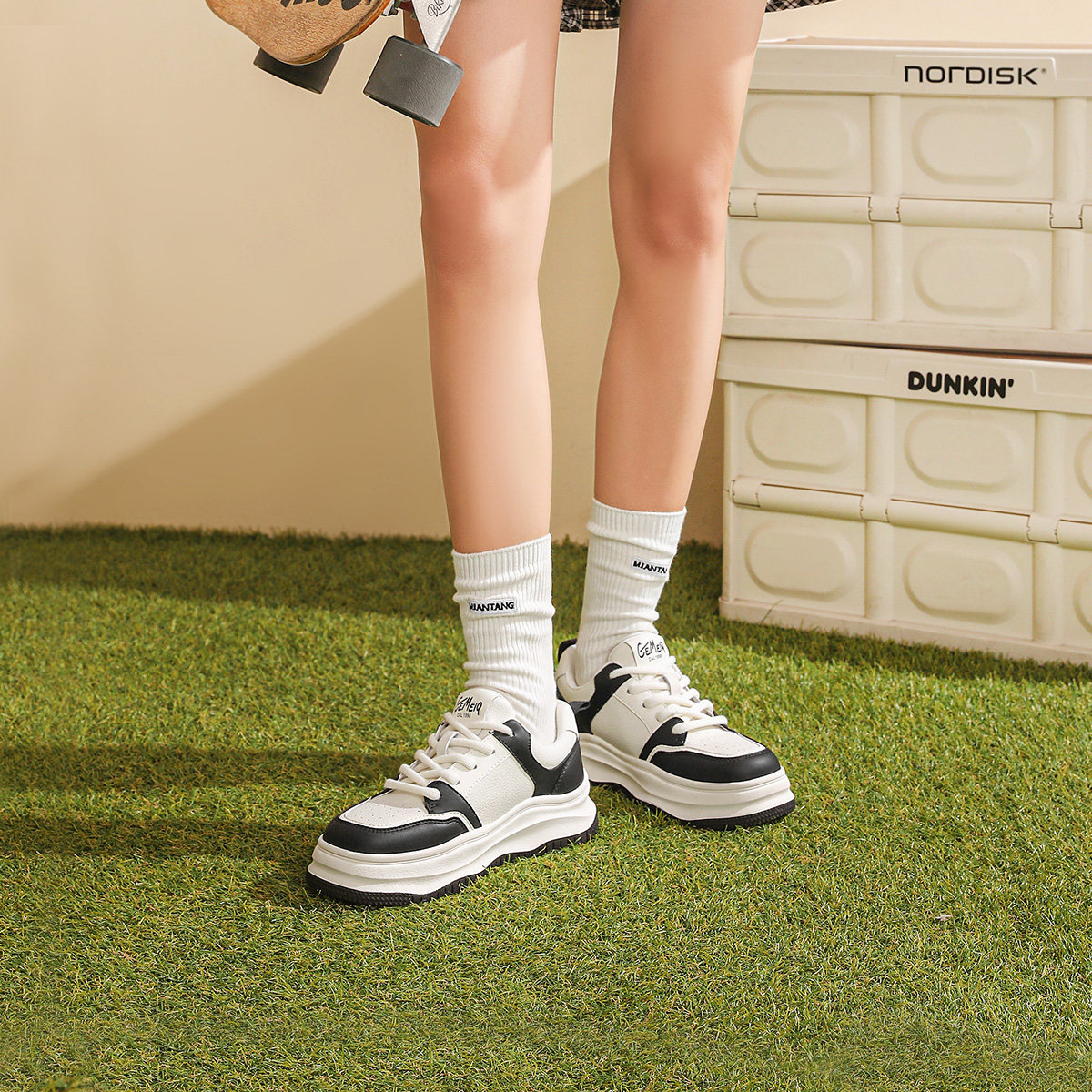 易少年 厚底德训板鞋女ins潮2025冬季新款港风小众百搭休闲小白鞋