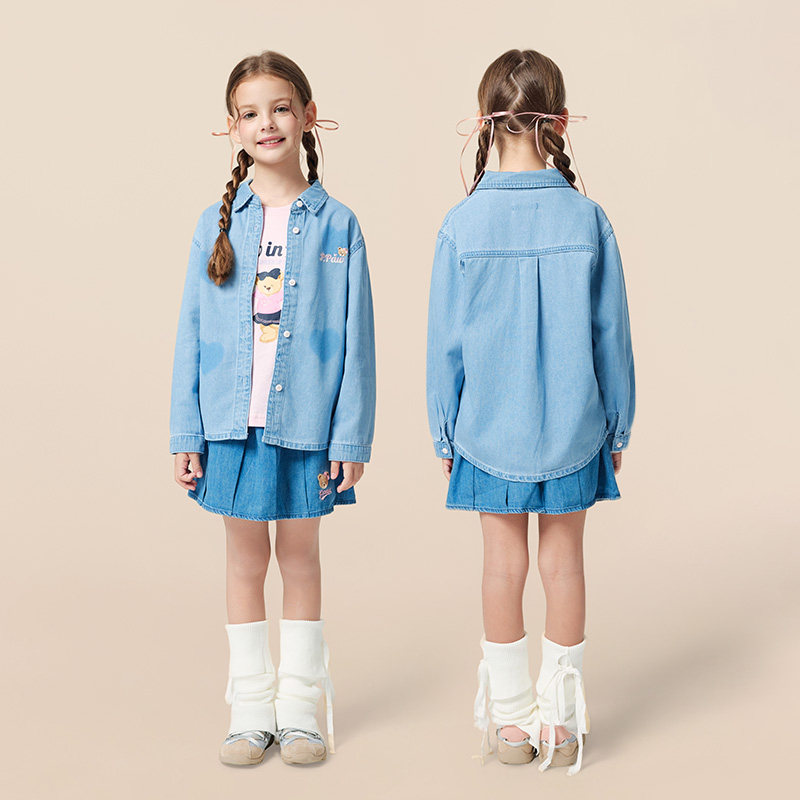 【商场同款】PawinPaw卡通小熊童装25年秋季新款女童牛仔长袖衬衫