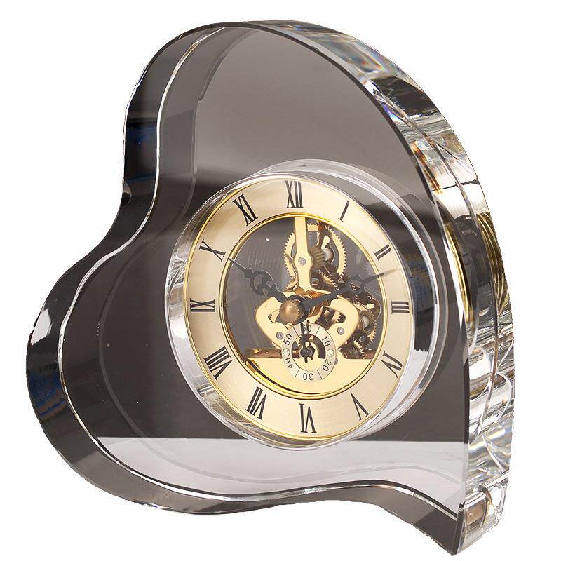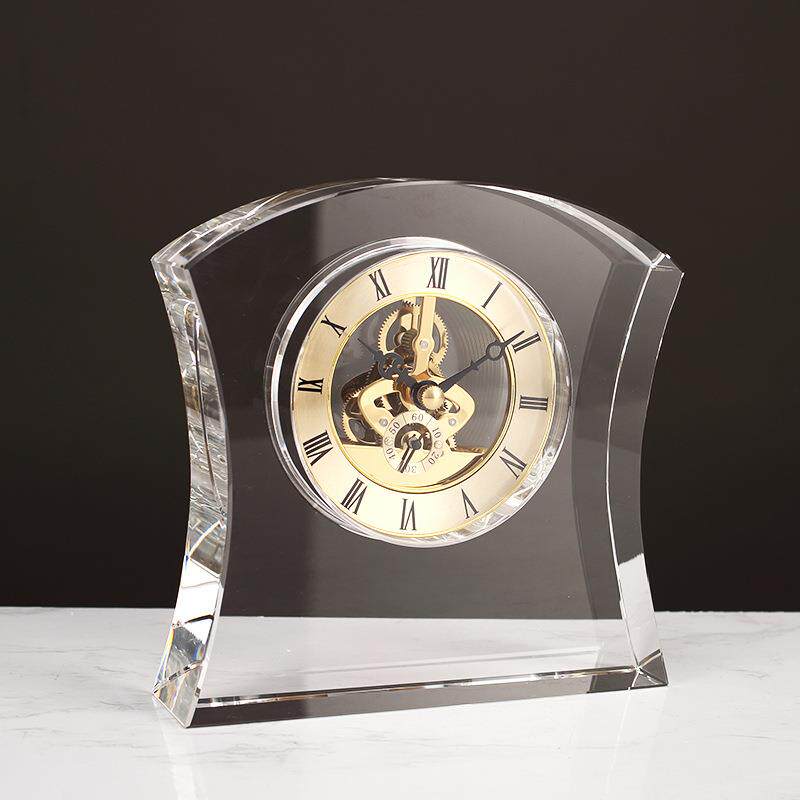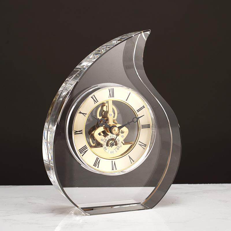 轻奢创意几何设计感现代人造水晶时钟工艺品家居样板房装饰品摆件