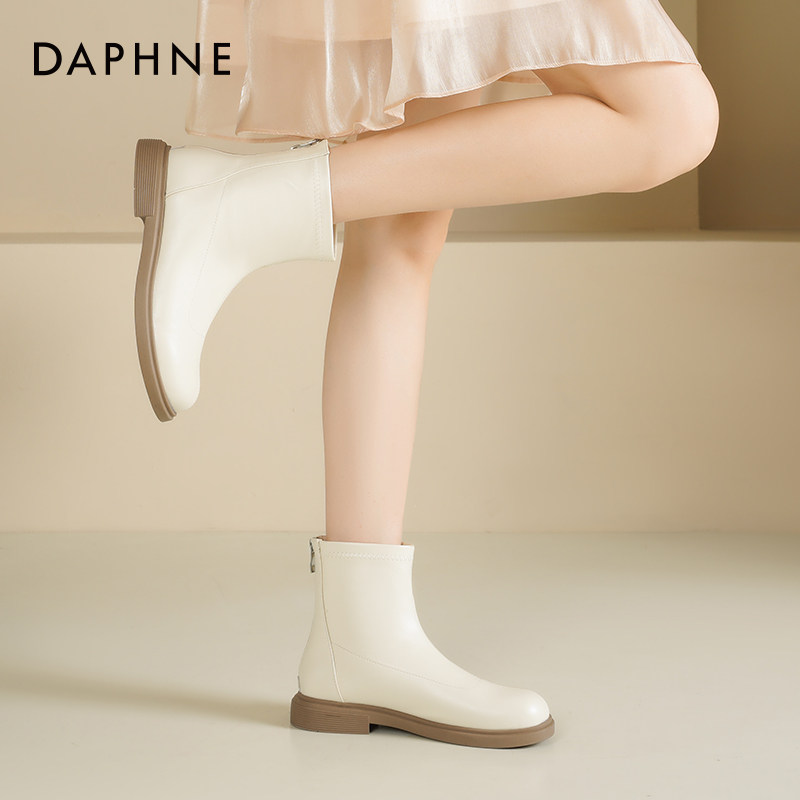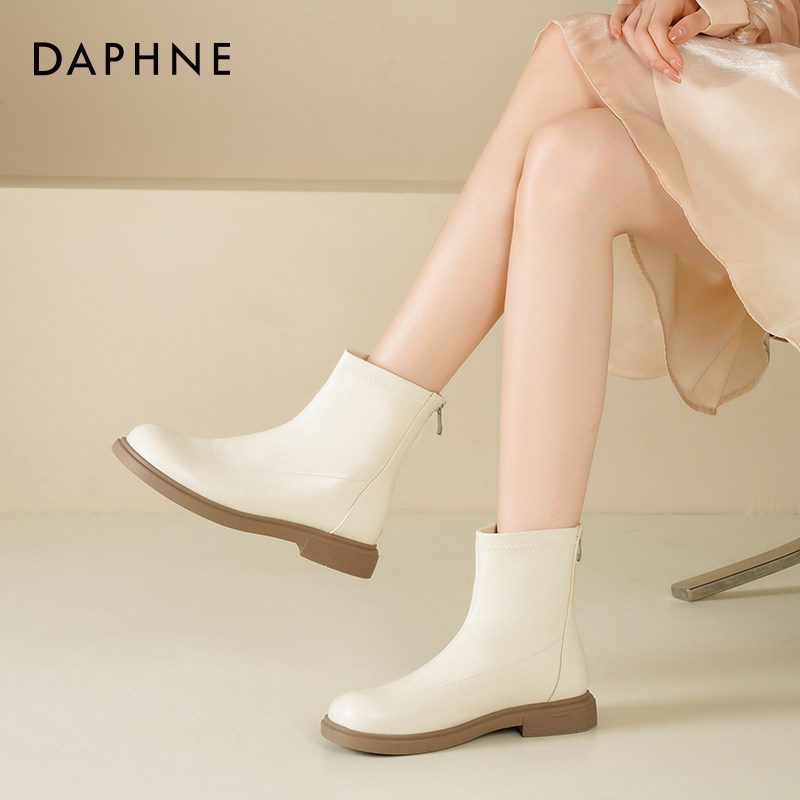 达芙妮短靴女2026新款春季女鞋弹力瘦瘦靴子平底女靴白色靴子女款