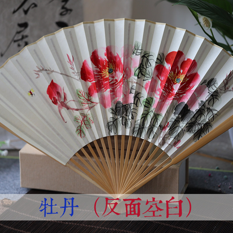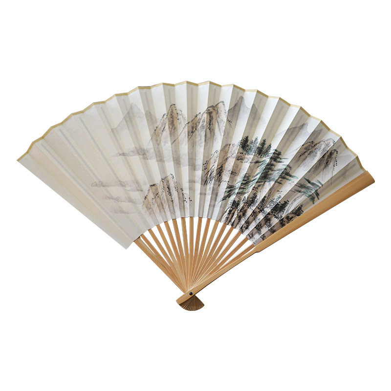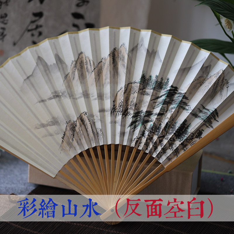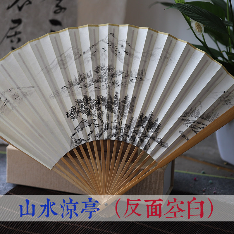 同和纸庄 手绘国画山水图案折扇皮纸宣纸空白文玩折扇95寸 书画扇