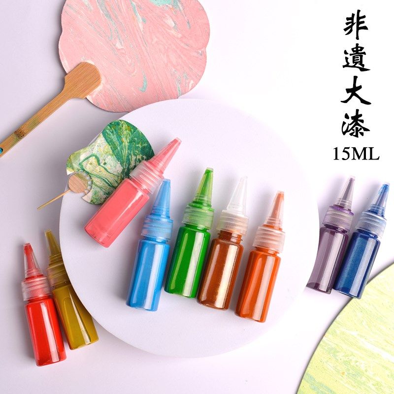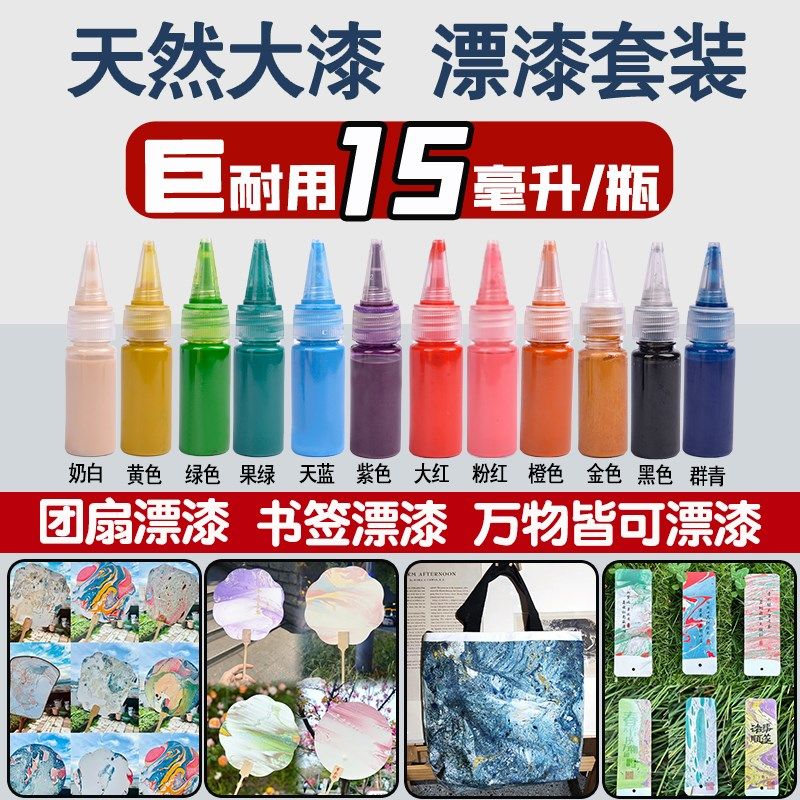 12色漂漆漆扇漂流大漆水拓画颜料漂漆书签团扇折扇漂流diy材料包