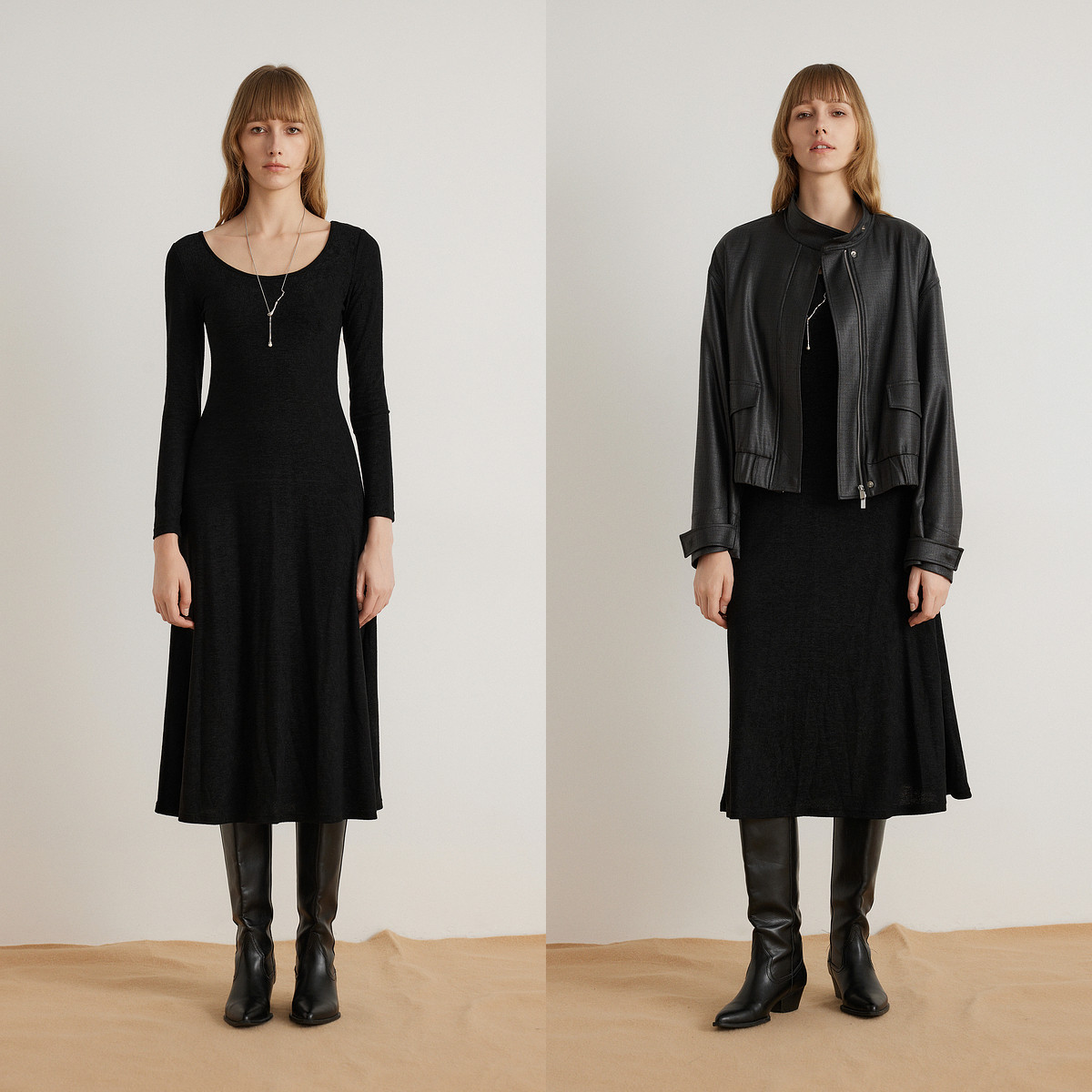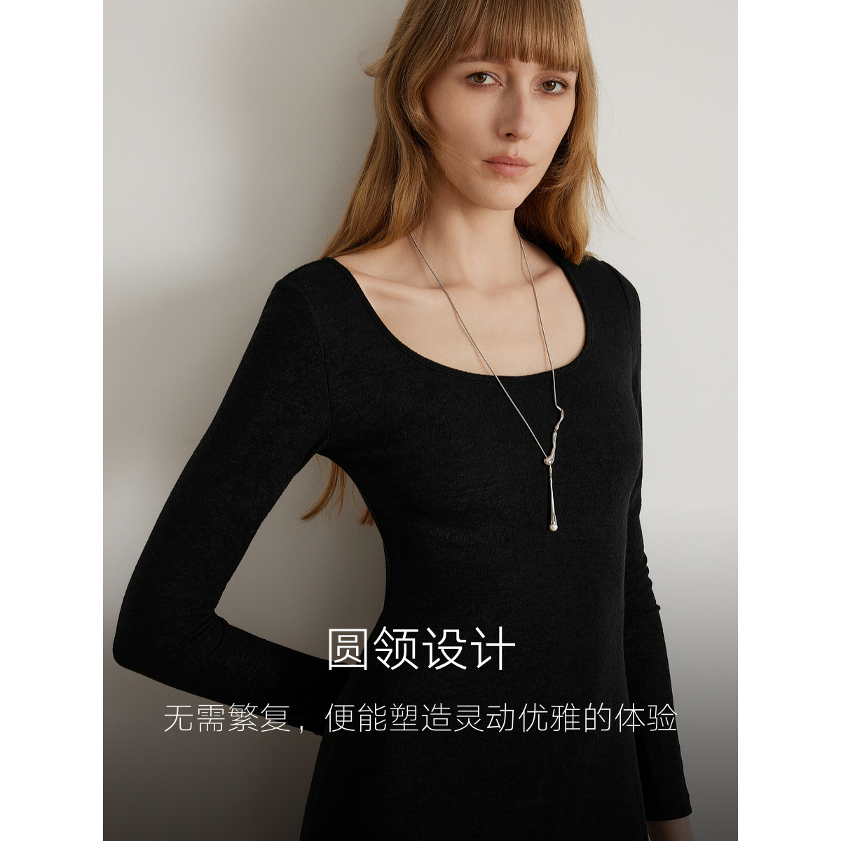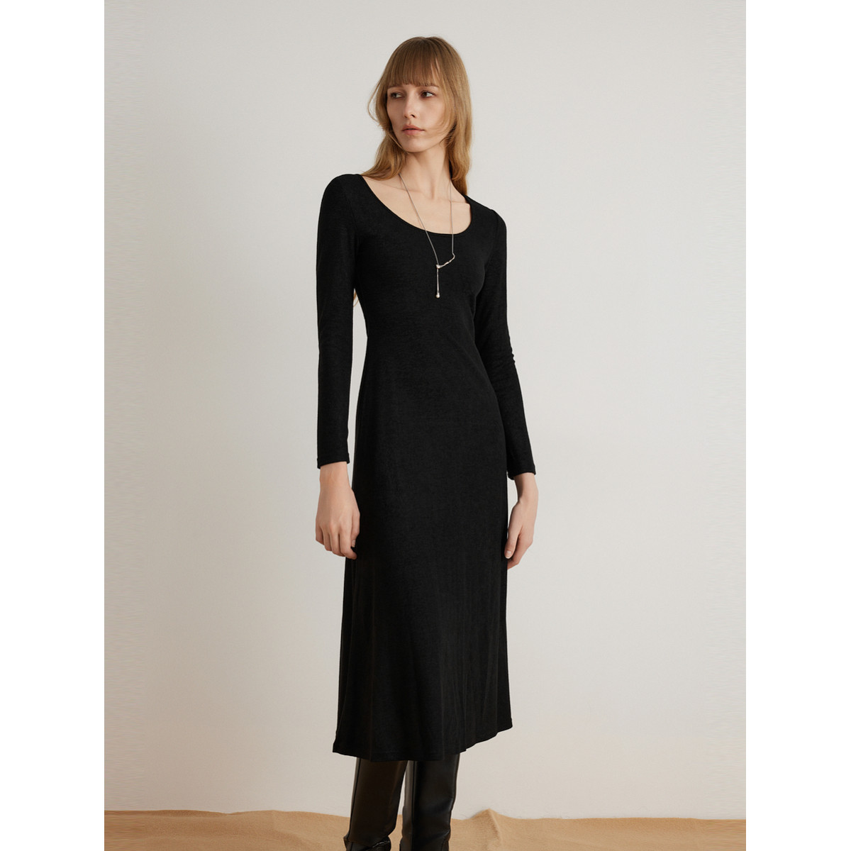 【商场同款】ELLE法式气质连衣裙女2025冬季新款纯色修身简约长裙