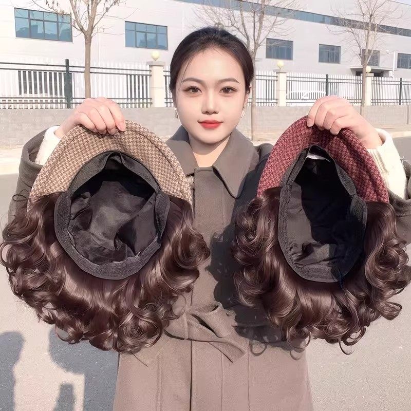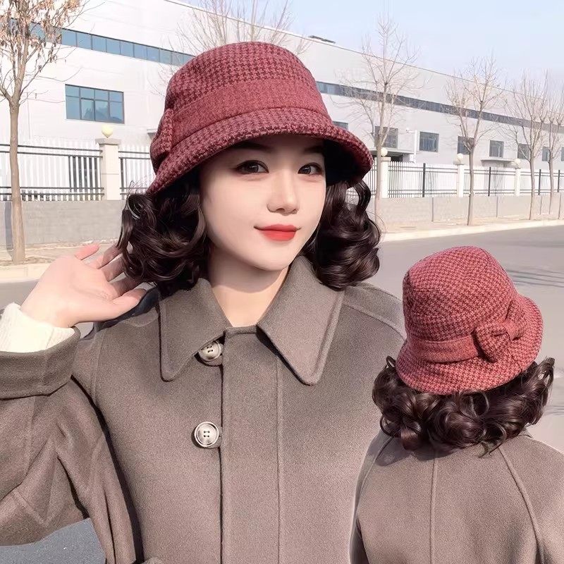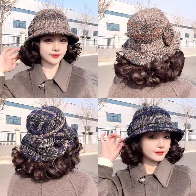 假发帽子一体女秋冬时尚气质短卷发中老年妈妈帽子带假发全头套式