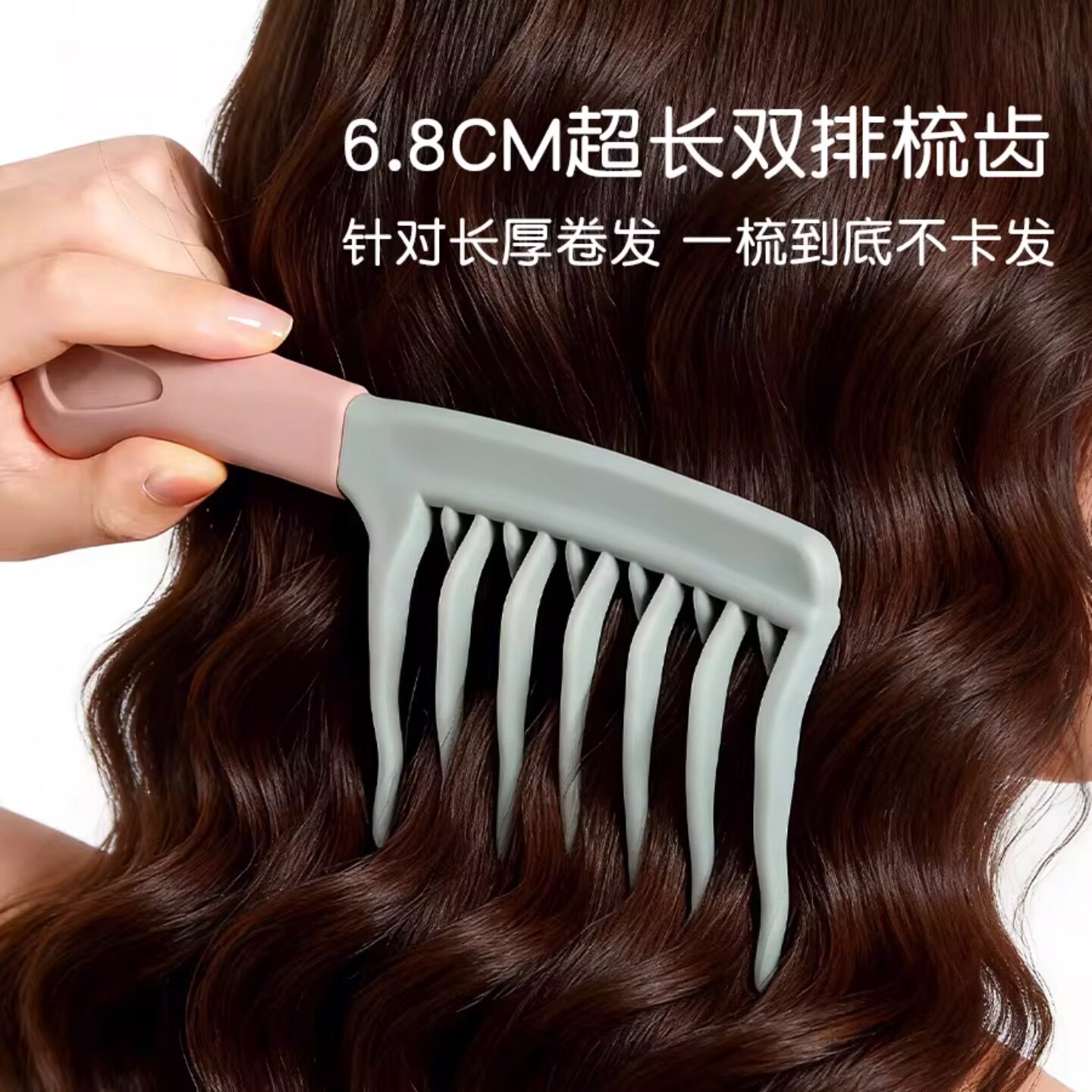 双排波浪齿大齿卷发梳子超长宽齿不打结顺发女士烫发梳新