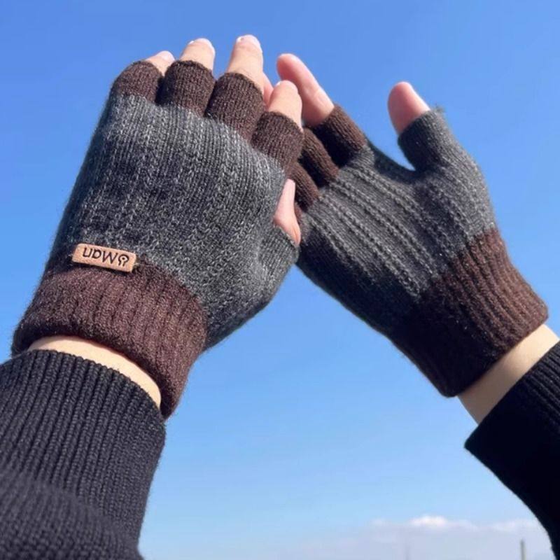 露二指骑行手套保暖冬季触屏韩版毛绒防寒漏指骑车办公写字神器