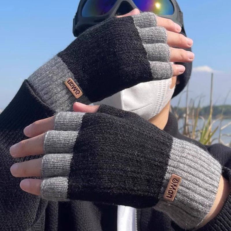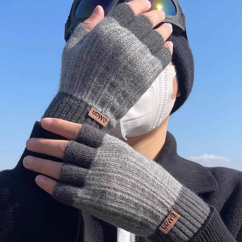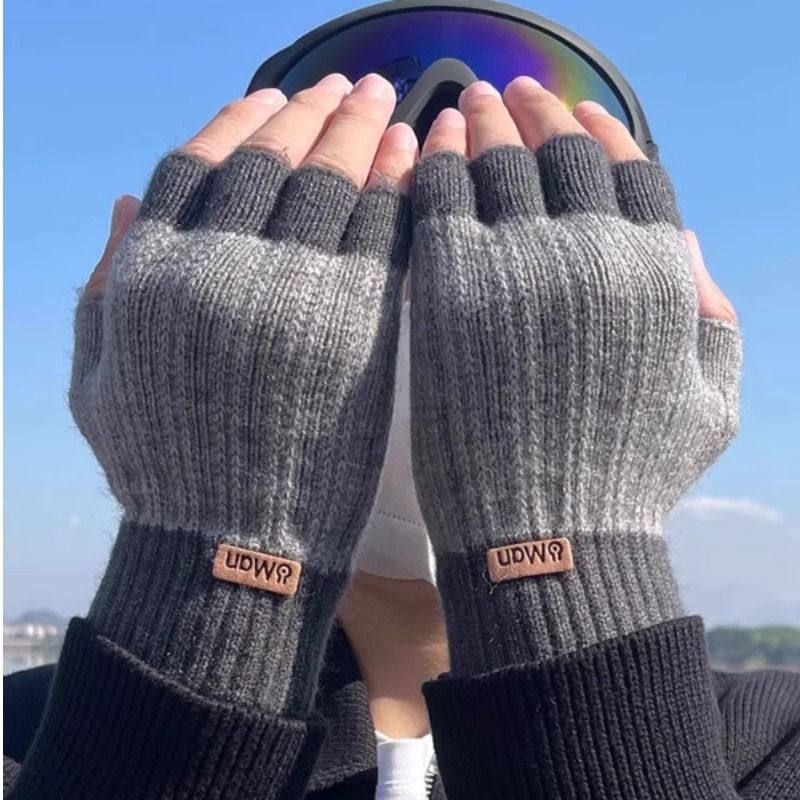 半指手套男露指冬季骑行加厚毛线漏指头学生写字针织保暖半截无指