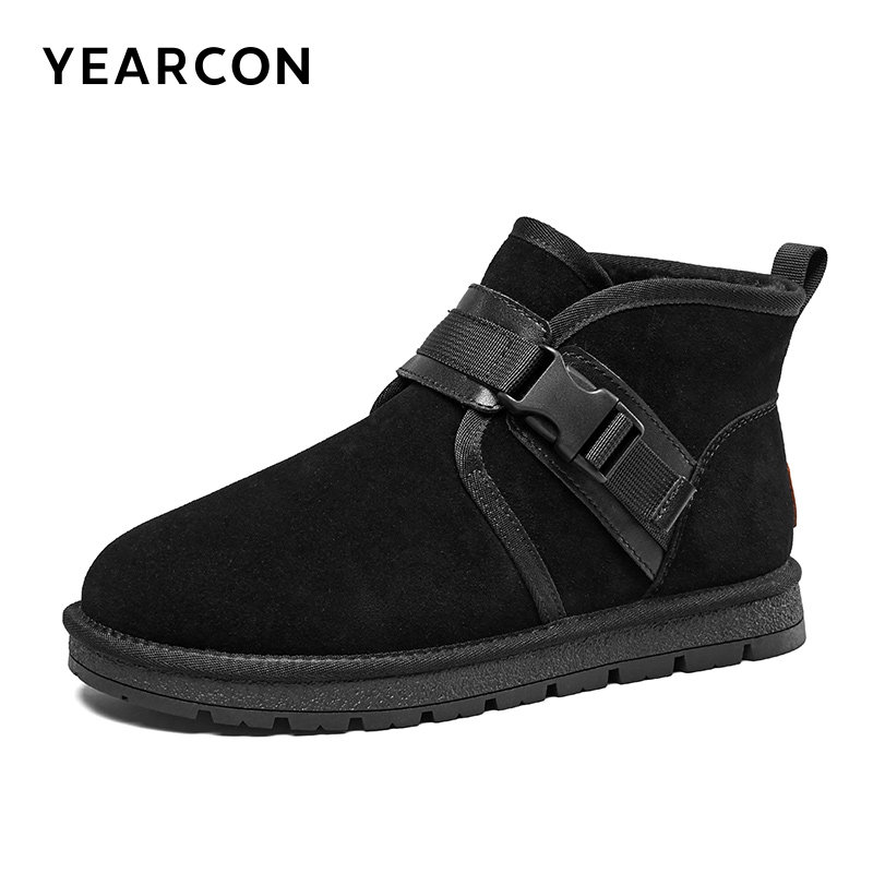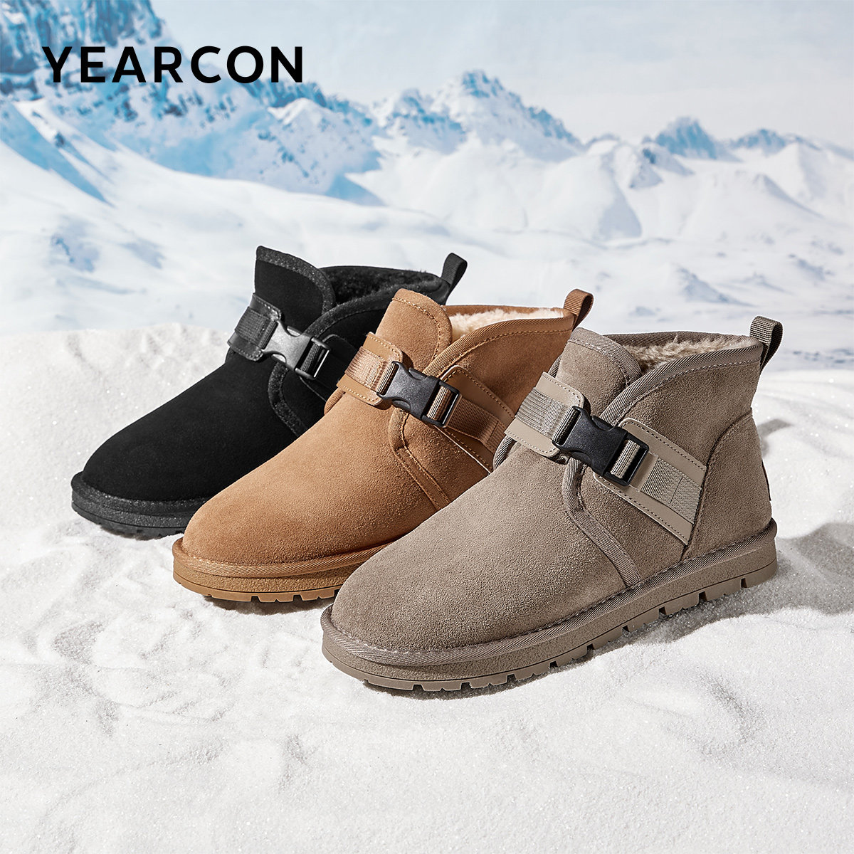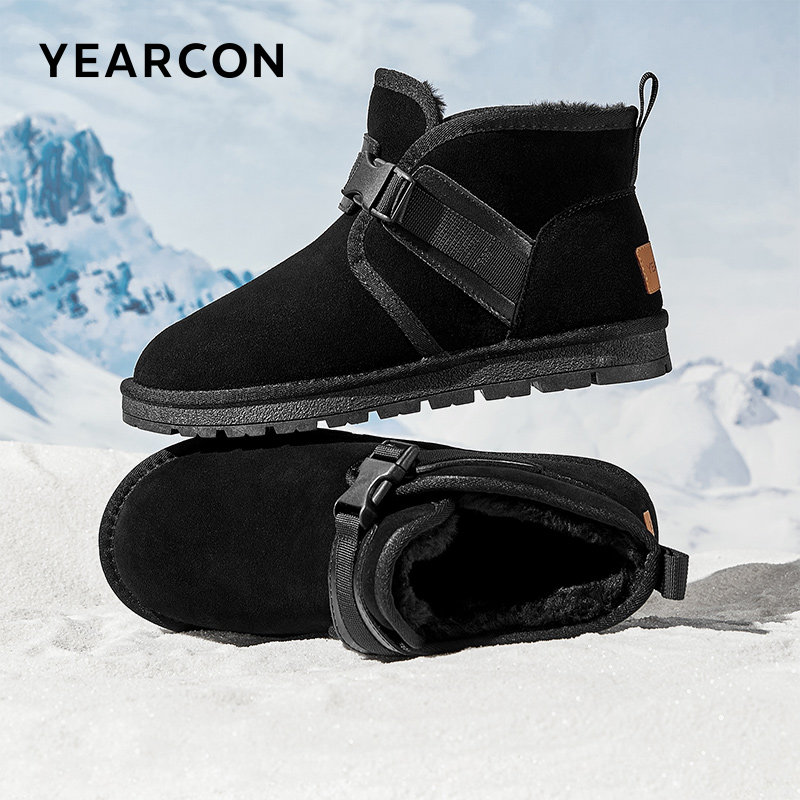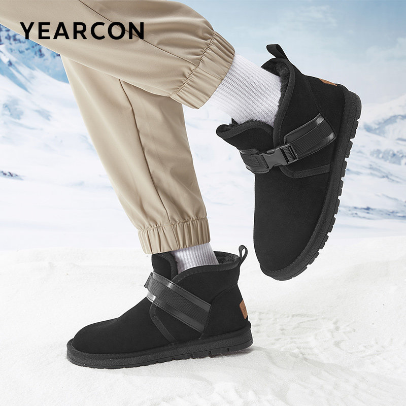 意尔康雪地靴男士2025冬款加绒保暖短靴反绒户外时尚潮流套脚棉靴