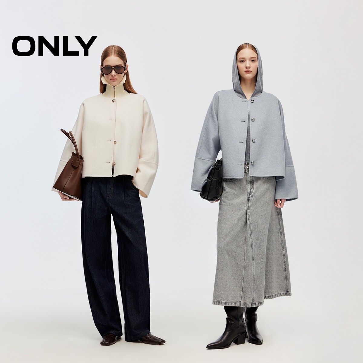 【ONLY奥莱】春季新款优雅双面呢简约宽松短款立体纽扣毛呢大衣女