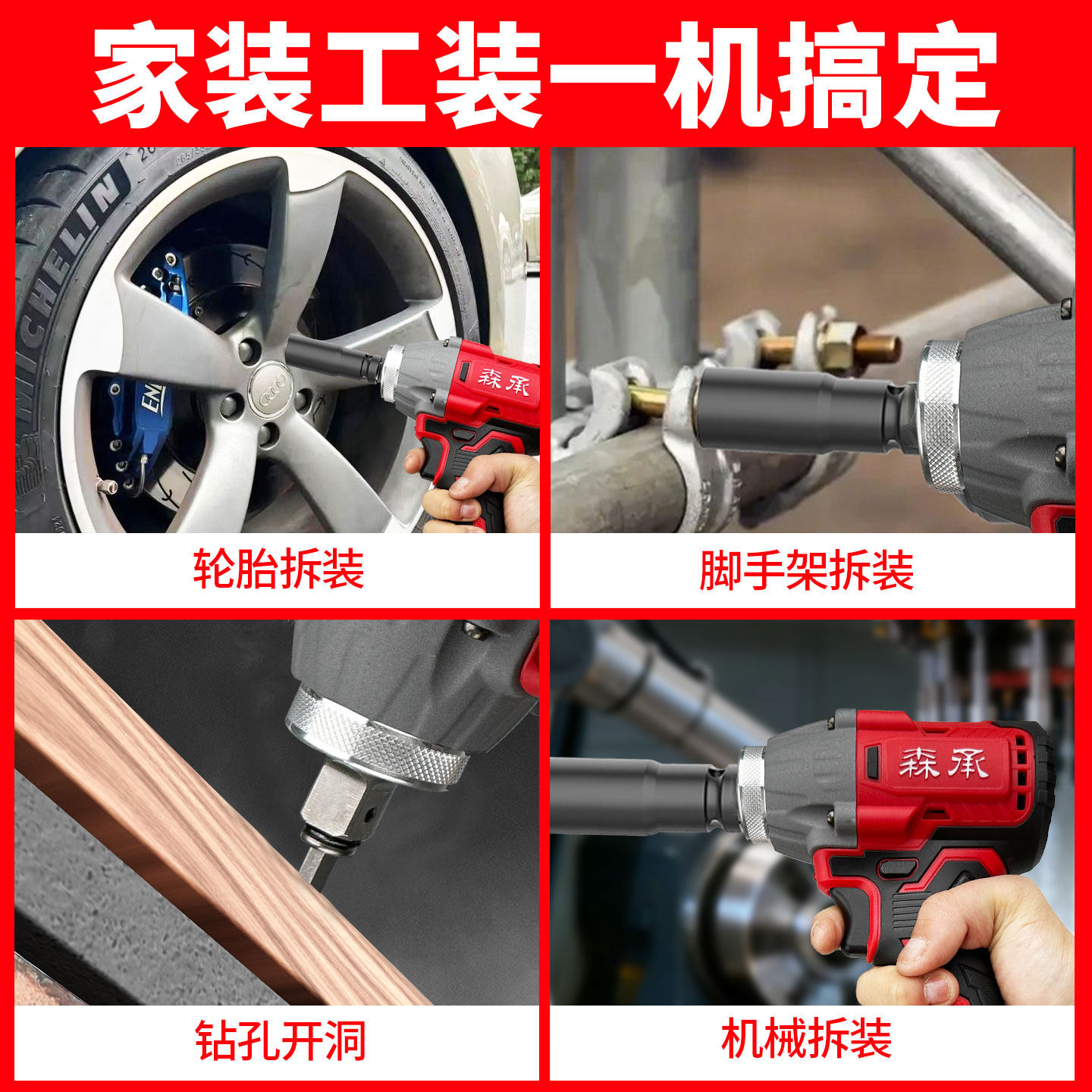 电动扳手大扭力无刷冲击风炮套筒大功率汽修工具套装大扭矩充电