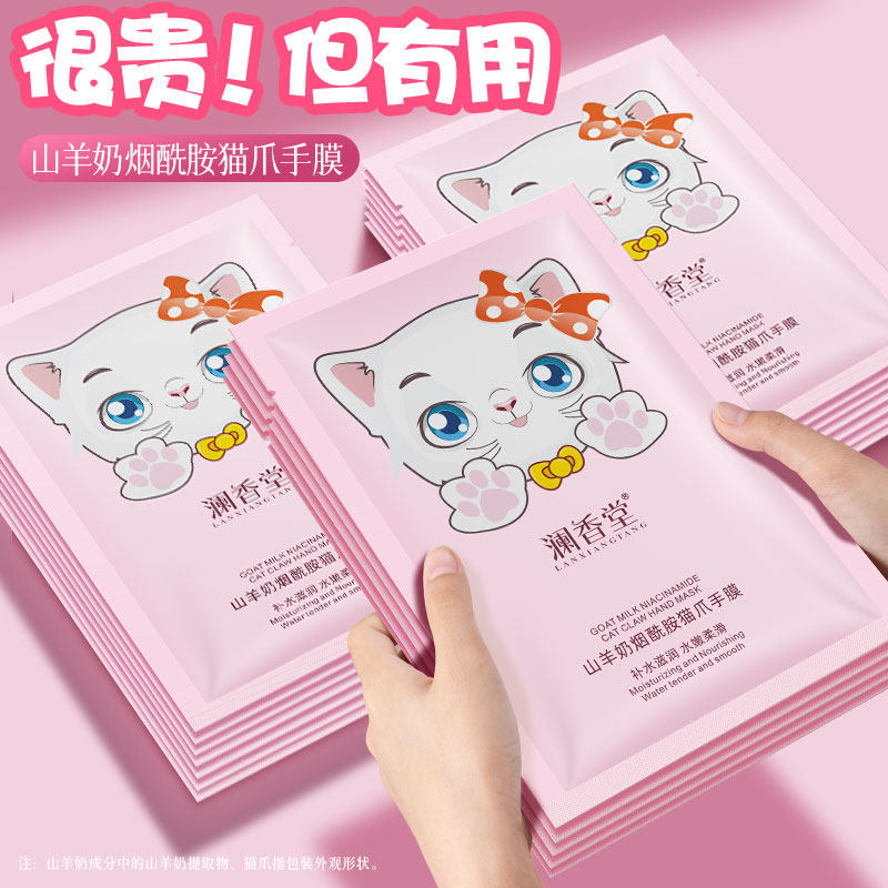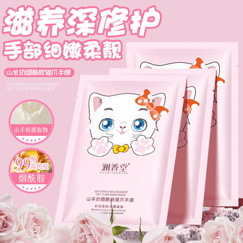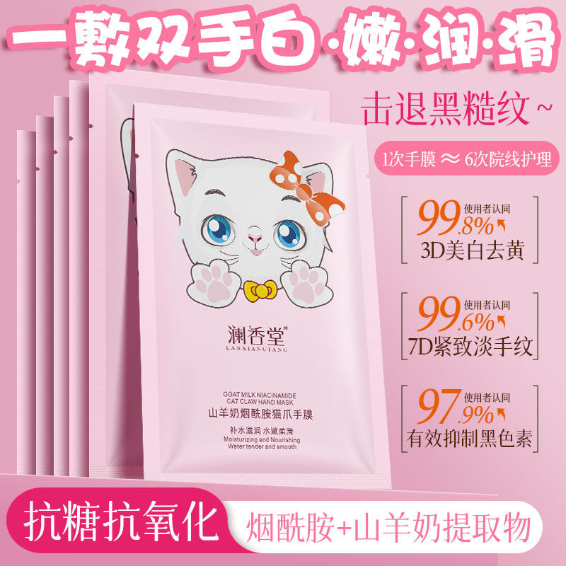 澜香堂烟酰胺山羊奶猫爪手膜嫩白保湿滋润双手补水去角质手部护理