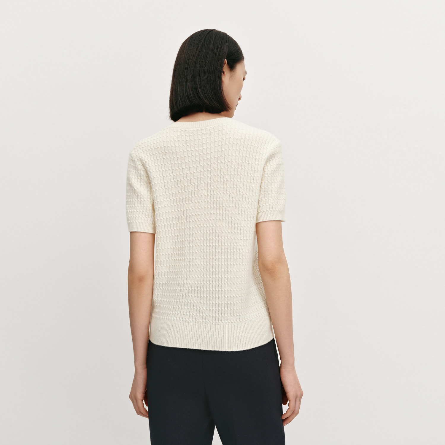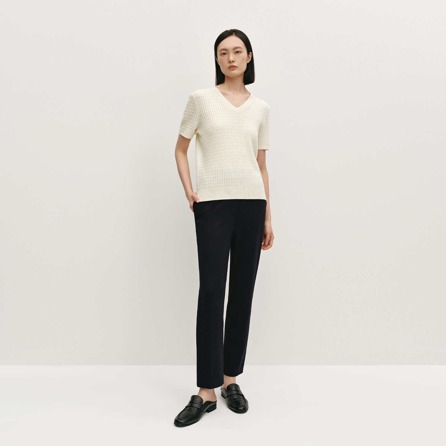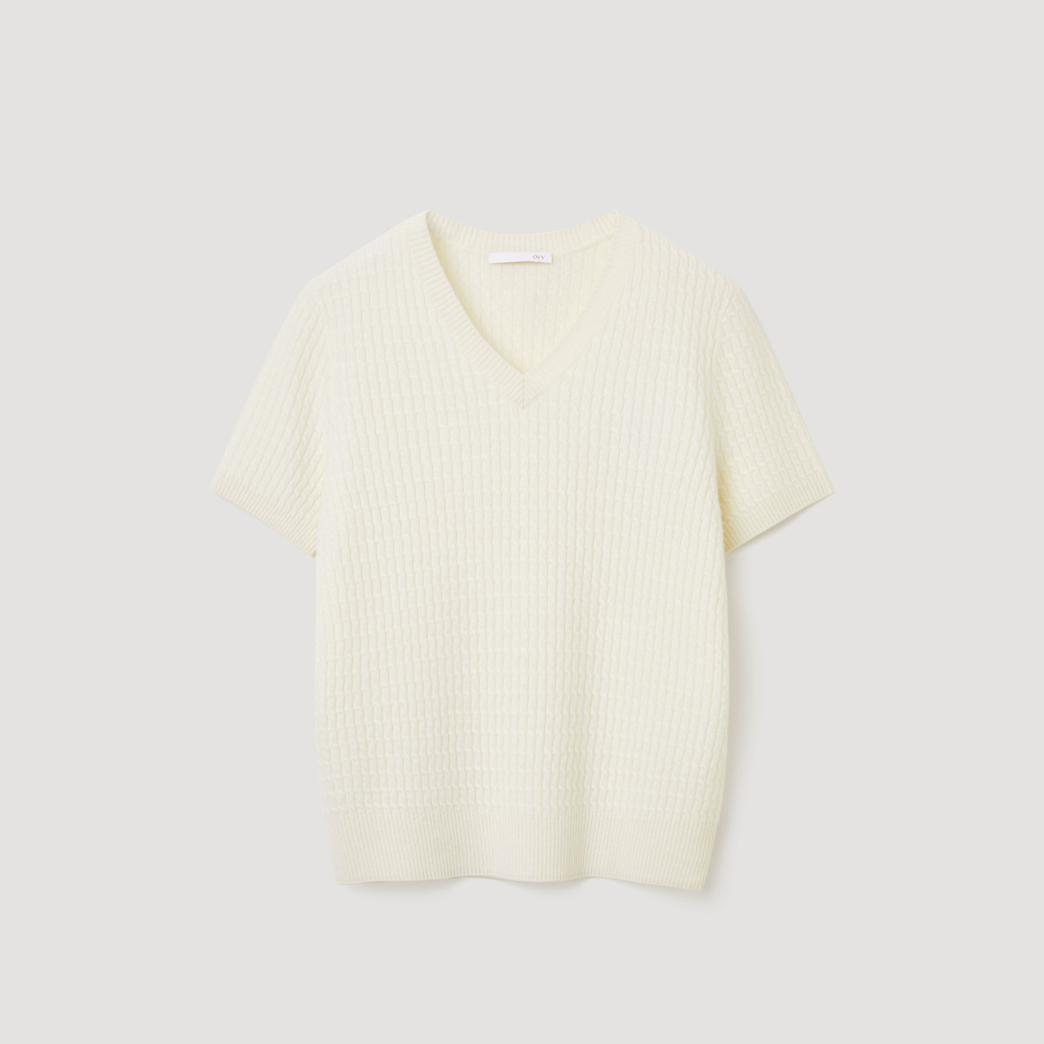 OVV秋冬热卖女装复古立体绞花短袖V领康赛妮羊绒衫