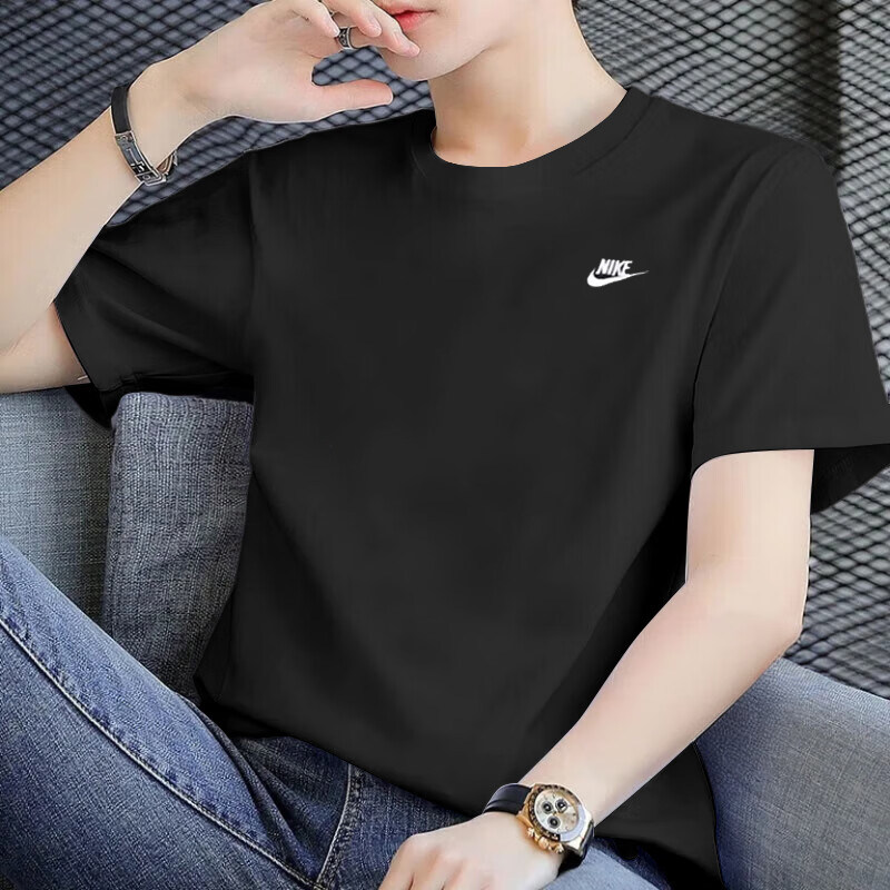 NIKE耐克短袖T恤男装夏季黑色纯棉运动透气上衣半袖美式休闲体恤