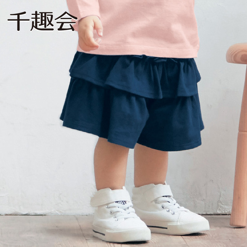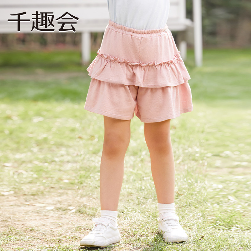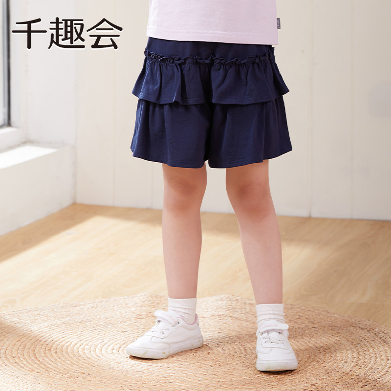 千趣会童装夏季幼儿园宝宝短裤两段式荷叶边淑女棉质女童安全裙裤
