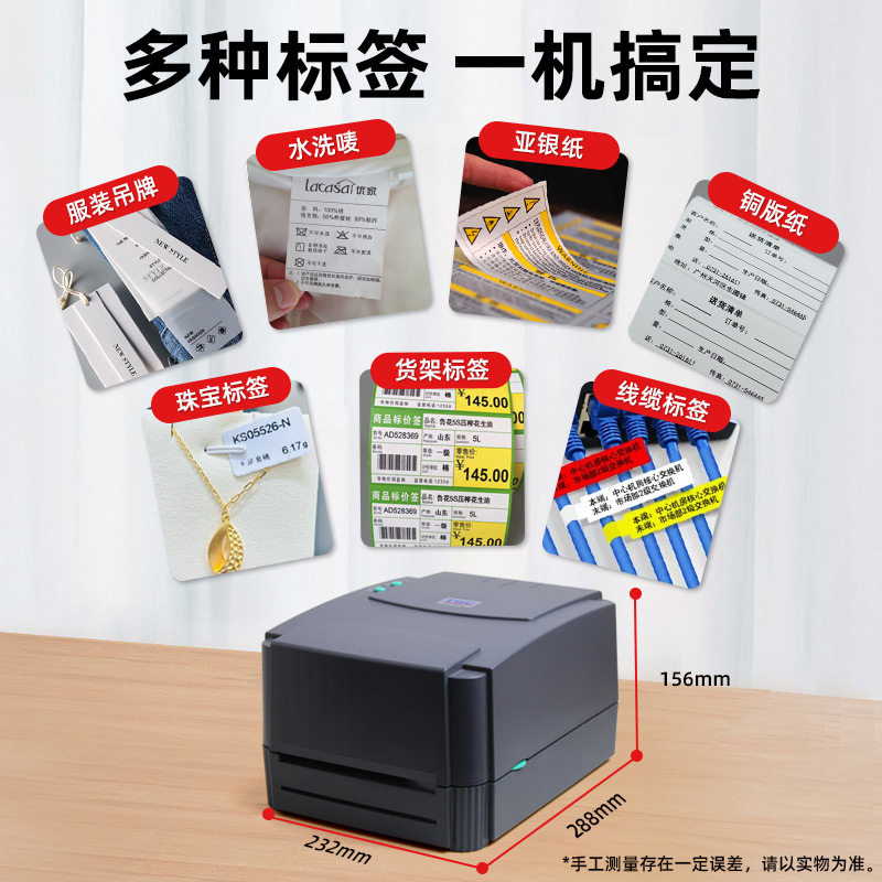 TSC ttp-244/342pro条码标签打印机热敏不干胶标签纸服装透明标吊牌水洗唛二维码手机蓝牙打标机热转印碳带