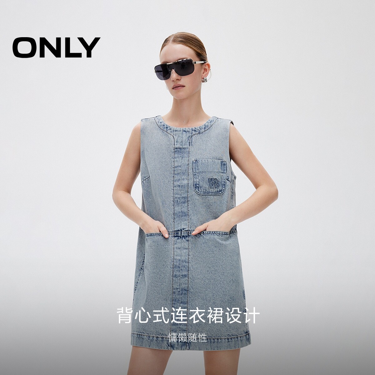 ONLY夏季复古慵懒直筒背心牛仔裙子短裙连衣裙女|125142005