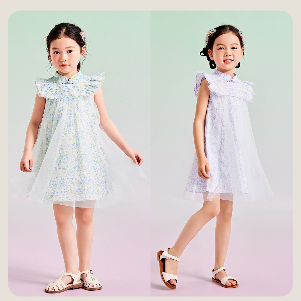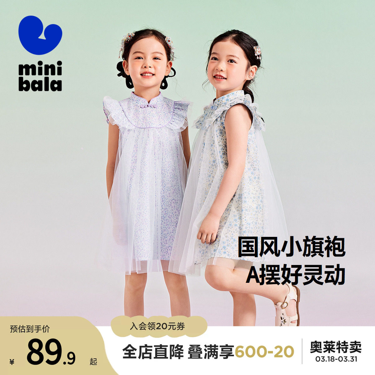 迷你巴拉巴拉女童新中式连衣裙宝宝旗袍国风立领裙子夏季