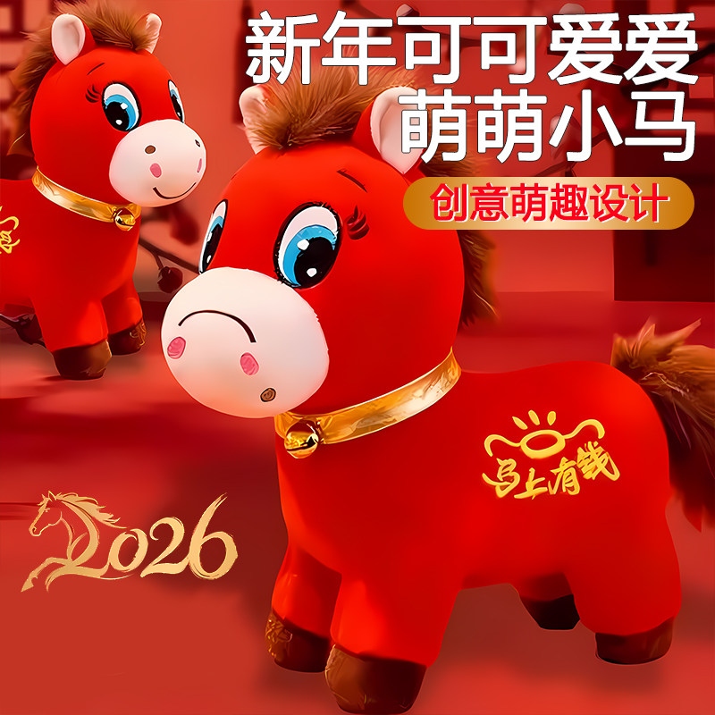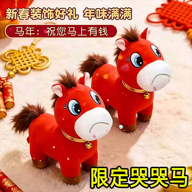 2026年网红哭哭马吉祥物玩偶笑笑马毛绒玩具装饰马年公仔新年礼物