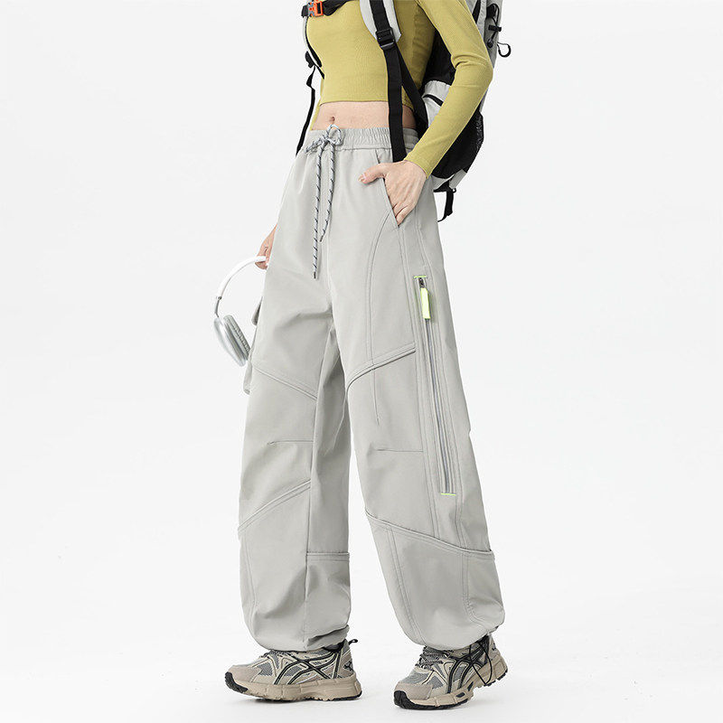 Hipanda你好熊猫秋冬新款宽松卫裤休闲长裤男女同款直筒裤阔腿裤
