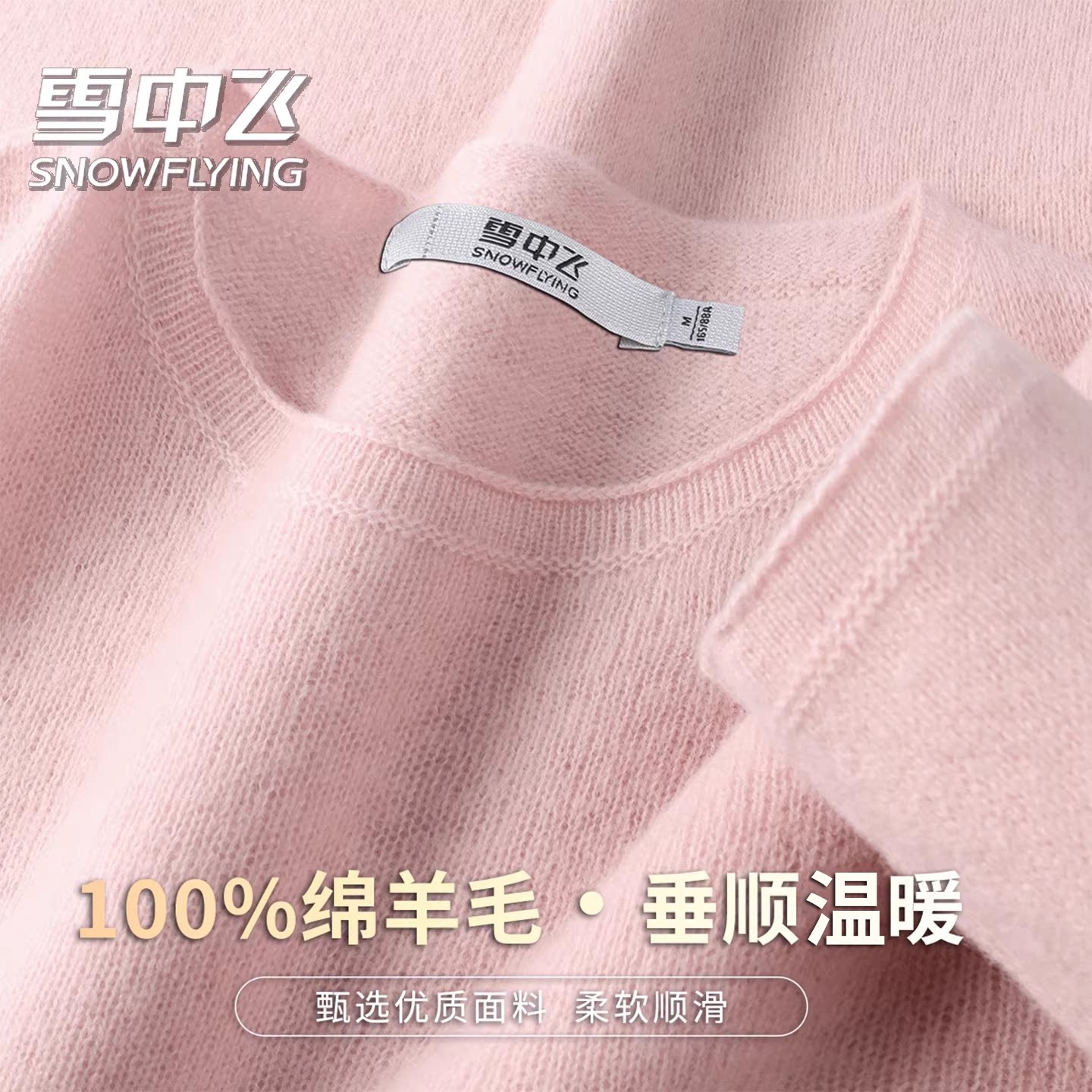 雪中飞【纯羊毛内搭】圆领套头秋冬针织衫女基础毛衣纯色羊毛衫W