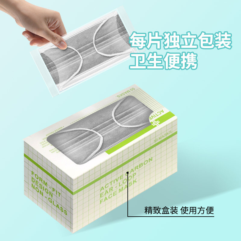 一次性口罩防尘防工业粉尘肺甲醛专用活性炭灰色五层防护单独包装