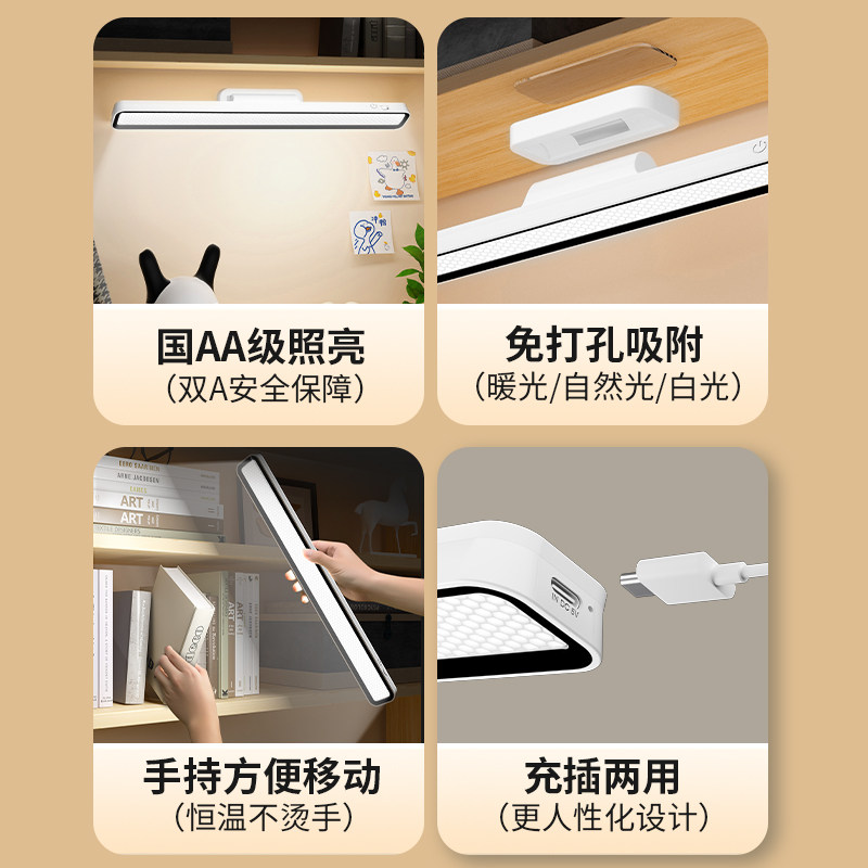 酷毙灯led护眼长条灯磁吸学习专用宿舍插电台灯学生小夜灯充电