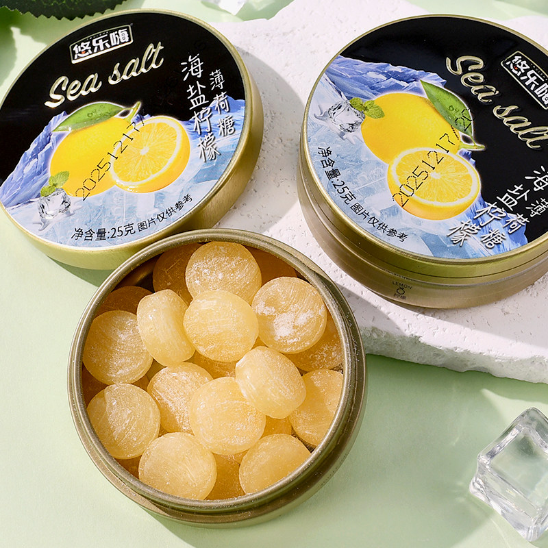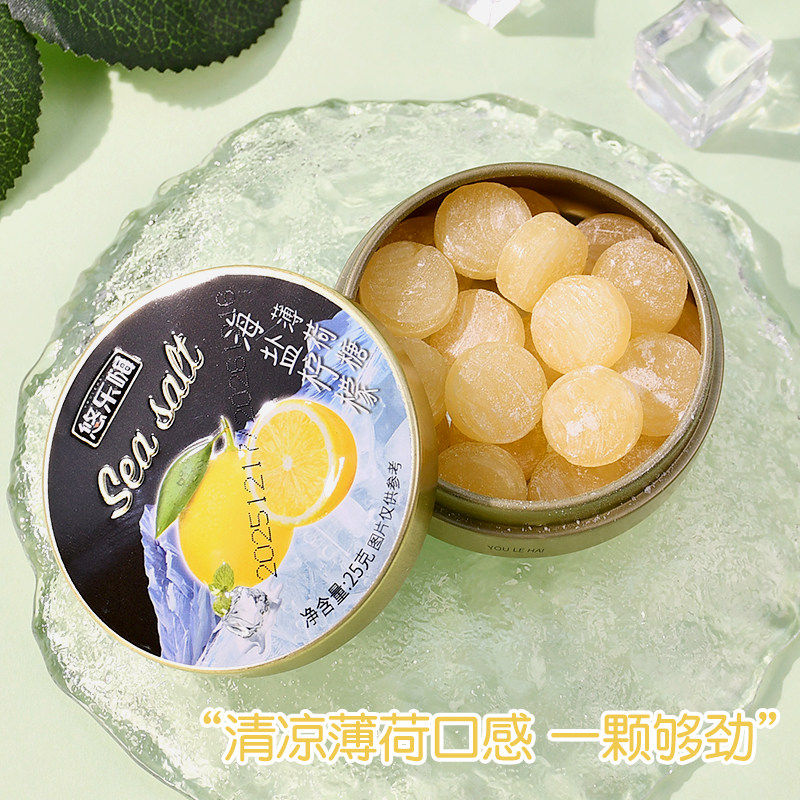 海盐咸柠檬薄荷糖铁盒便携袋清凉薄荷味网红小零食水果盒装罐装